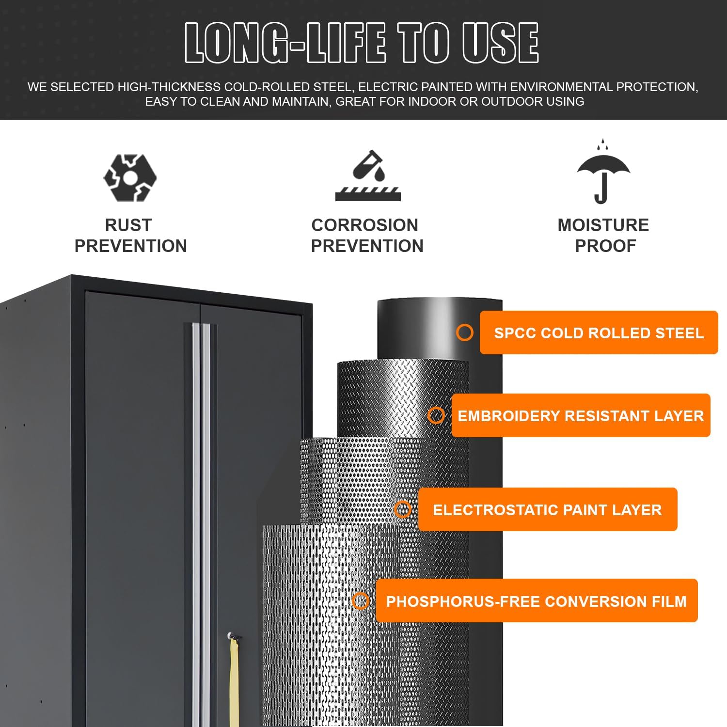 - Tool Organization: HPDMC Garage Storage Cabinet System is specifically designed for garage tool organization. It provides dedicated storage solutions for tools, ensuring that they are easily accessible and well-organized. The system features a black and grey color scheme, adding a stylish and visually appealing touch to your garage or workshop