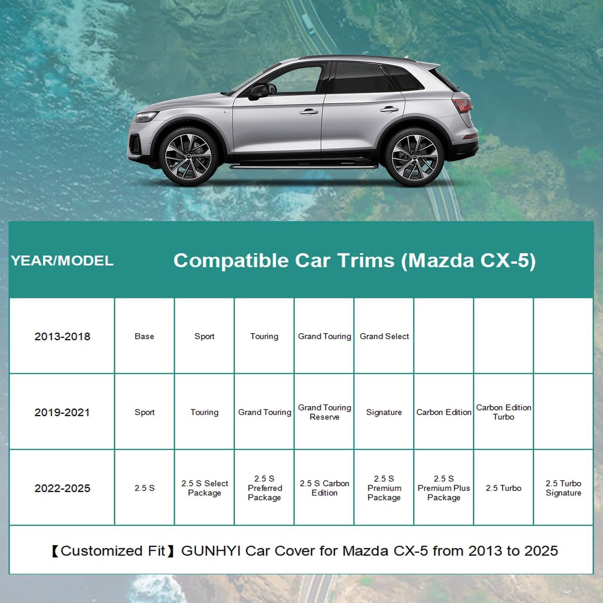- 【Compatible with】This Full Car Cover Custom fit for Mazda CX-5 CX5 from 2012 to 2025. Comes with a microfiber towel that you can use to clean your car, because if there is sand on the surface of the car before use, it may damage the paint.