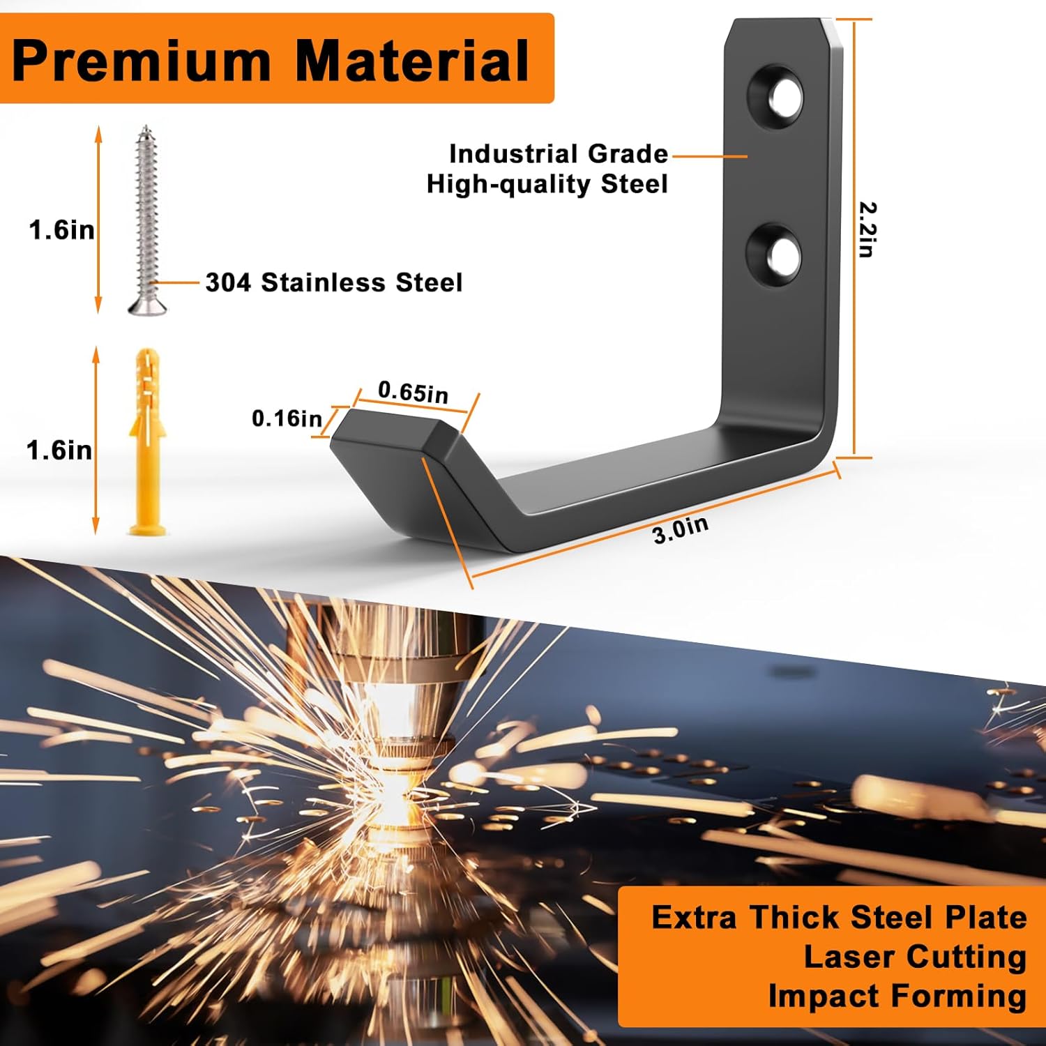 - 【What You Get】The hanging hooks consist of 4 wall brackets, 8 drywall anchors and 8 screws. The heavy duty wall hook is rigorously tested before shipment. Please feel free to contact us with any questions regarding our items. We will definitely give you a satisfying solution.