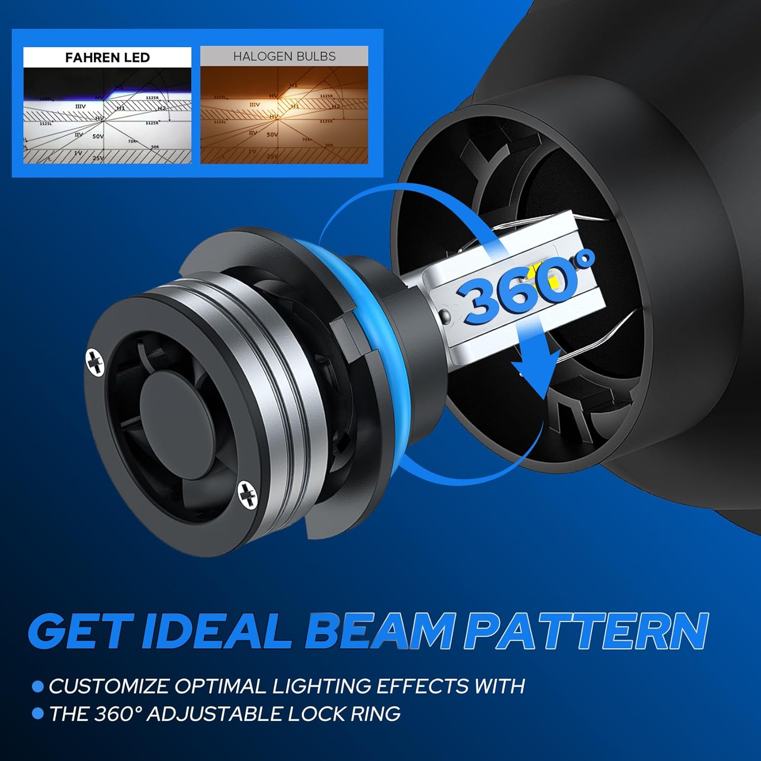 - 【360°Adjustable Beam】The HB5 driving light bulb adopts 360° adjustable locker ring to enable some models to finally obtain the best beam pattern, which provide optimal visibility without dark spots or shadows. And the IP68 waterproof design, which can ensure that the vehicle light works normally in bad weather such as heavy rain and heavy snow, ensuring your driving safety.