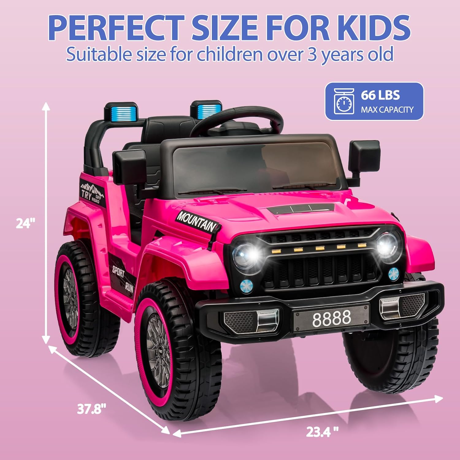 Hetoy Kids Ride On Truck Car, 12V Battery Powered Electric Car w/Parent Remote Control, Spring Suspension, 3 Speeds, LED Lights, Music & Horn, Kids Electric Vehicles Toy Gift for Boys Girls, Pink