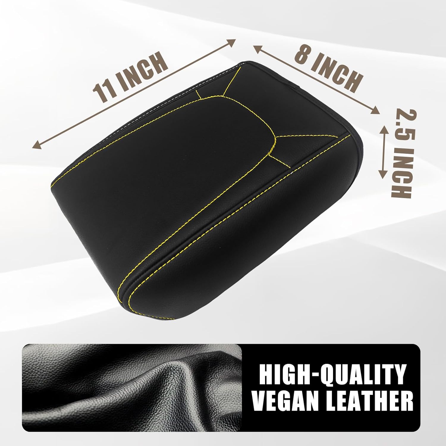 Muslogy Center Console Armrest Cover Compatible with Colorado/GMC Canyon 2023 2024 2025 ZR2 Z71 Trail Boss LT WT Elevation AT4 Denali AT4X Accessories Regular Thick(Yellow Stitching)
