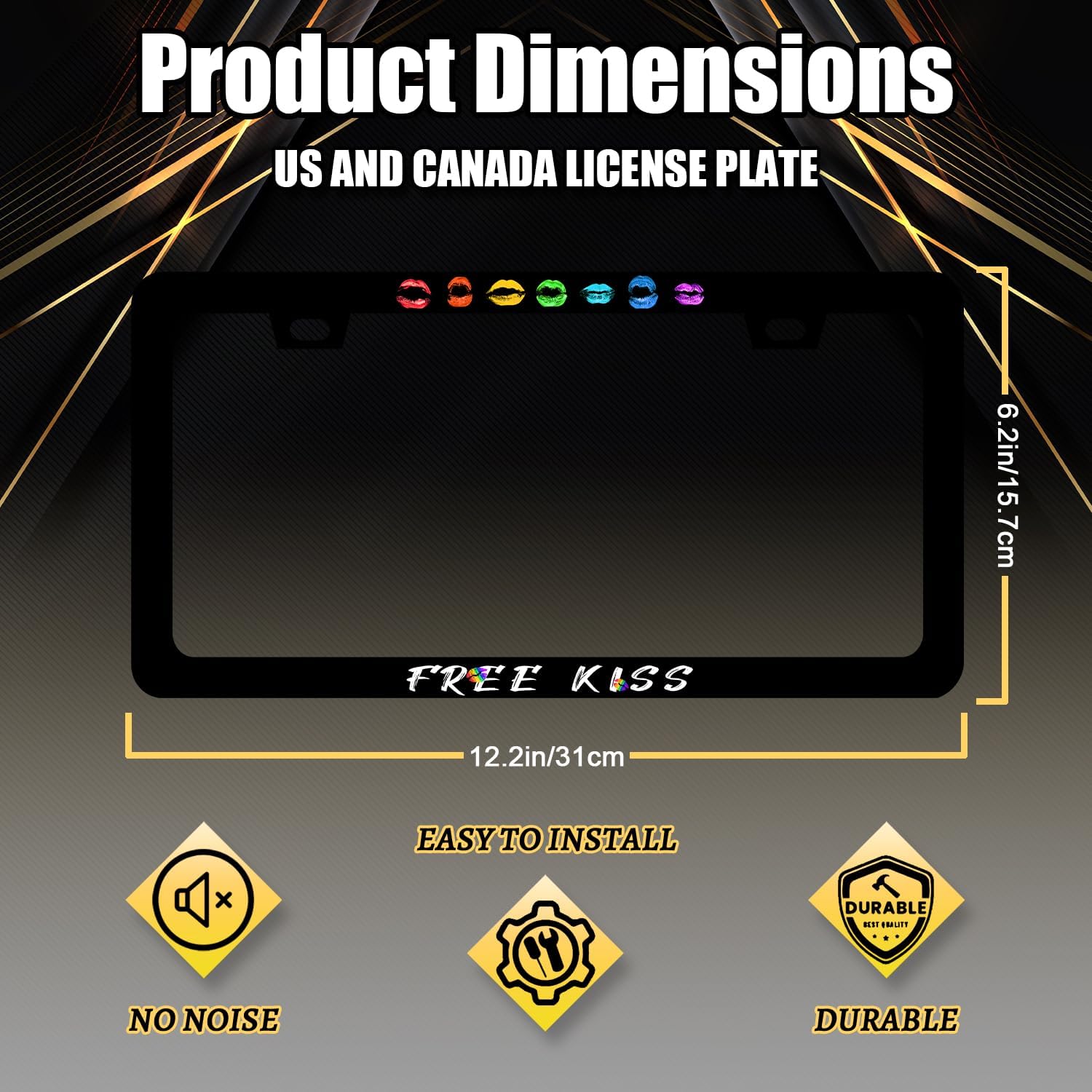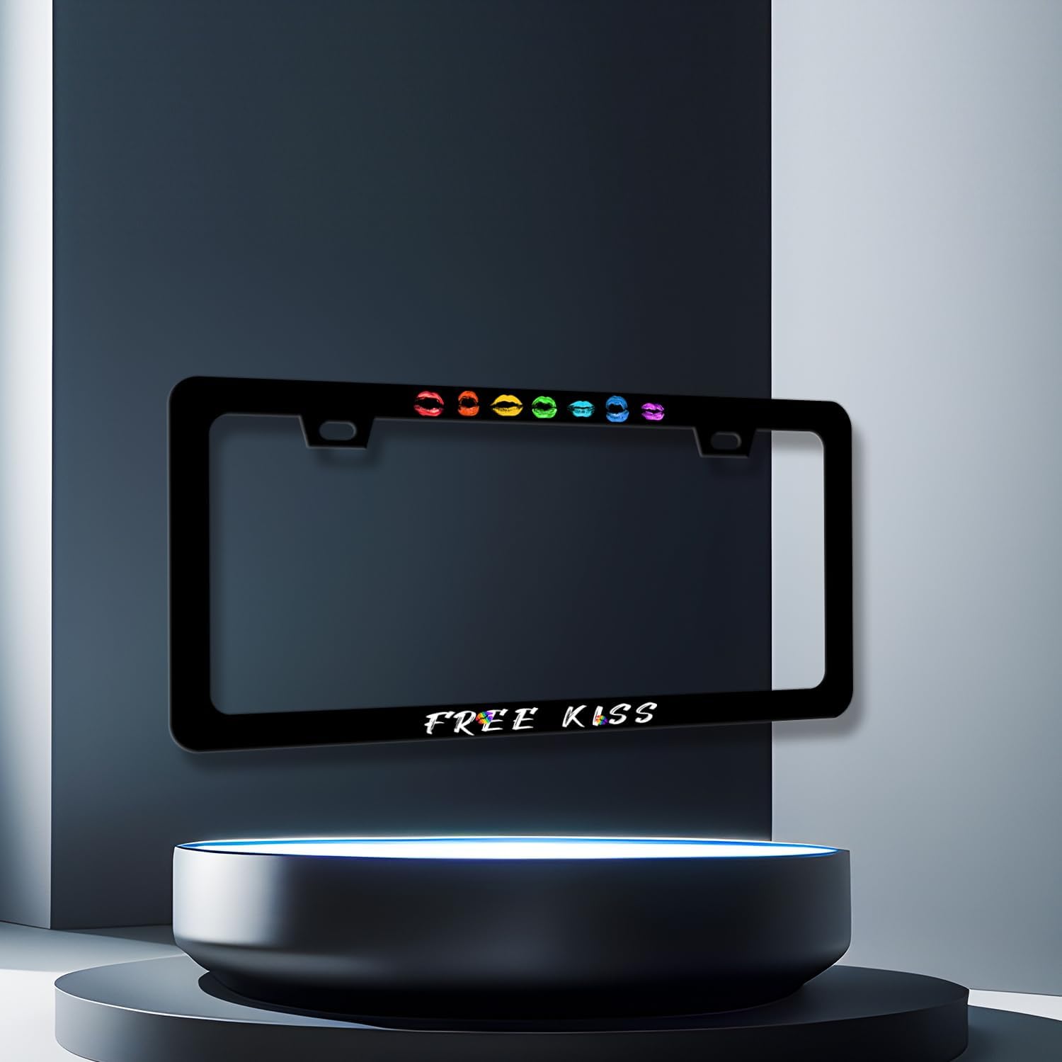 Sexy Lips License Plate Frame Colorful Kiss License Plate Holder for Personalized Car Decorative Stainless Steel Funny Text License Plate Lip Auto Part with Screws 12.2" x 6.2"