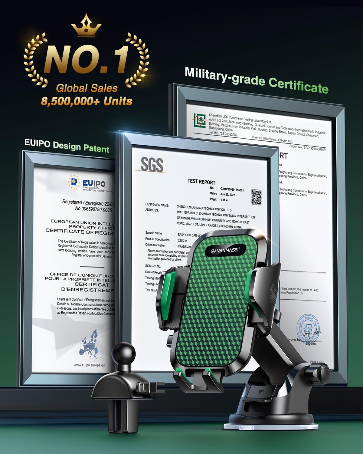 VANMASS 2025 ใTrue Military-Gradeใ Phone Holders for Your Car ใ65 LBS Strongest Suction & Clipใ Ultimate Cell Phone Mount Dashboard Window Vent for iPhone 16 Pro Max 15 14 13 Samsung Android