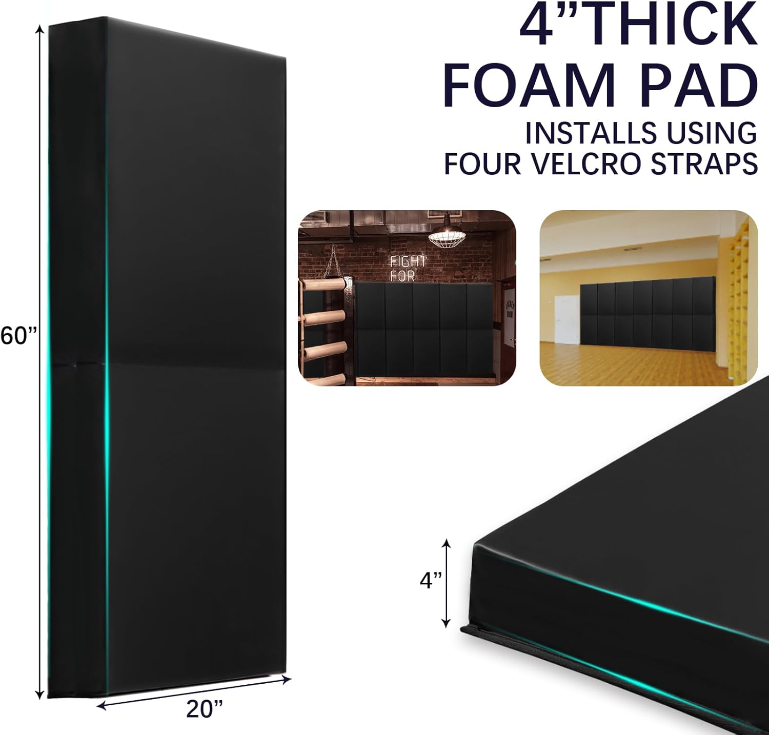 - 💯【Extensive coverage and value】 : Each package includes one smooth black sports protective wall pads, providing a total coverage area of 8.33 square feet. With pad sizes of 60"x20"x4" they can accommodate various wall sizes, ensuring comprehensive protection.