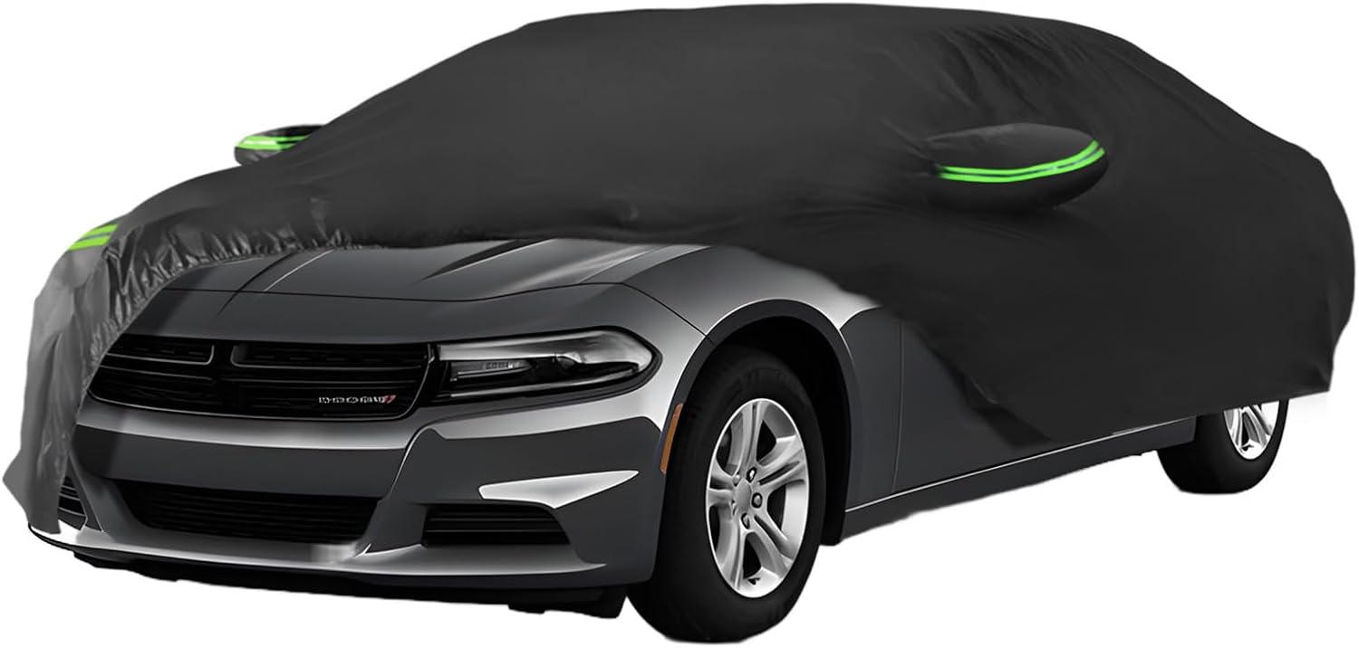- Safe & Convenient: The car cover for Dodge Charger increases safety for nighttime street parking with reflective warnings on the front and rear. The full exterior covers easily can be done with one person! Attached FREE storage bag for easy carry-around and long-term storage.