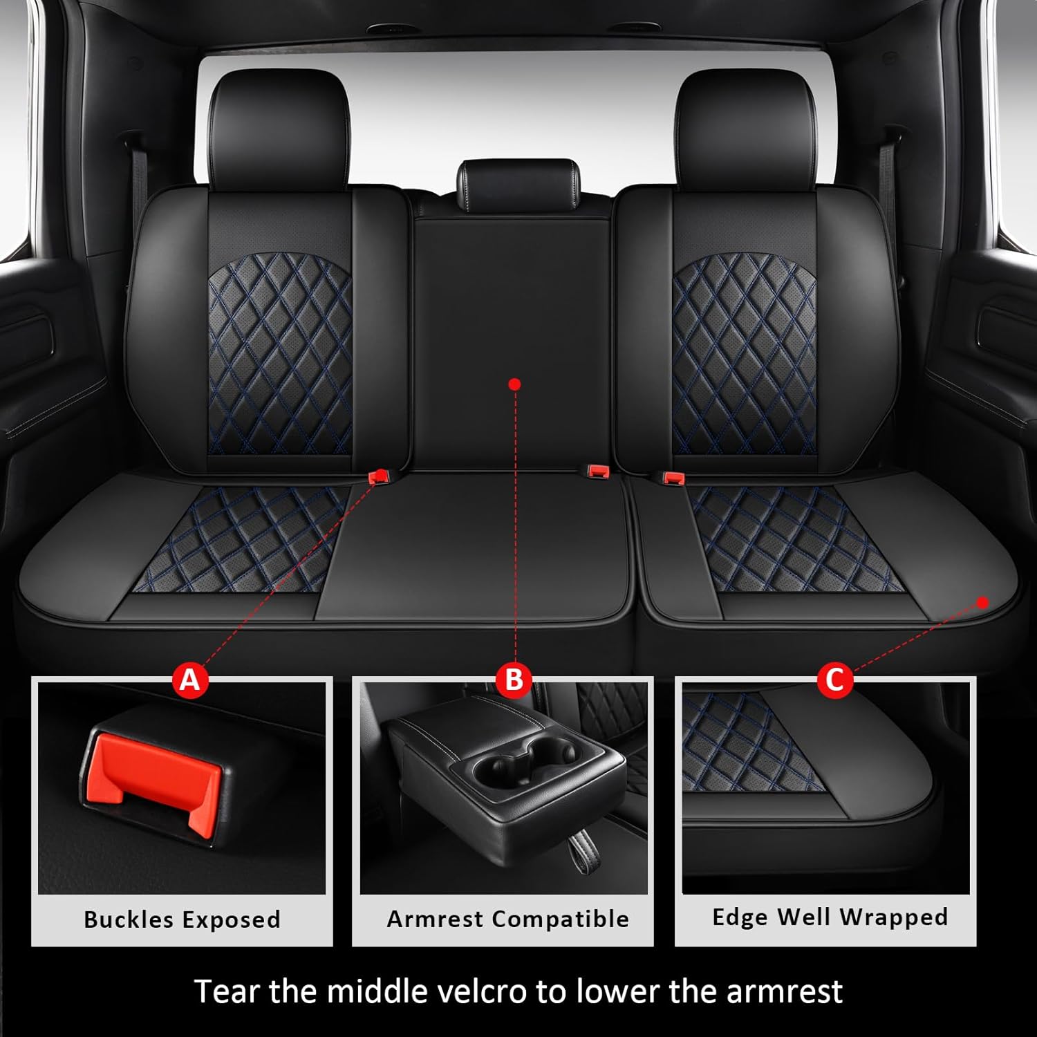 - Perfect Fit: Truck seat covers for ram Waterproof Leather Custom Fit 2009-2025 Ram 1500 2500 3500 Crew Quad Regular Cab Pickup Cushions Compatible with Split Flat Bench 40/60.Note,it's not fits a Curved bench seat.