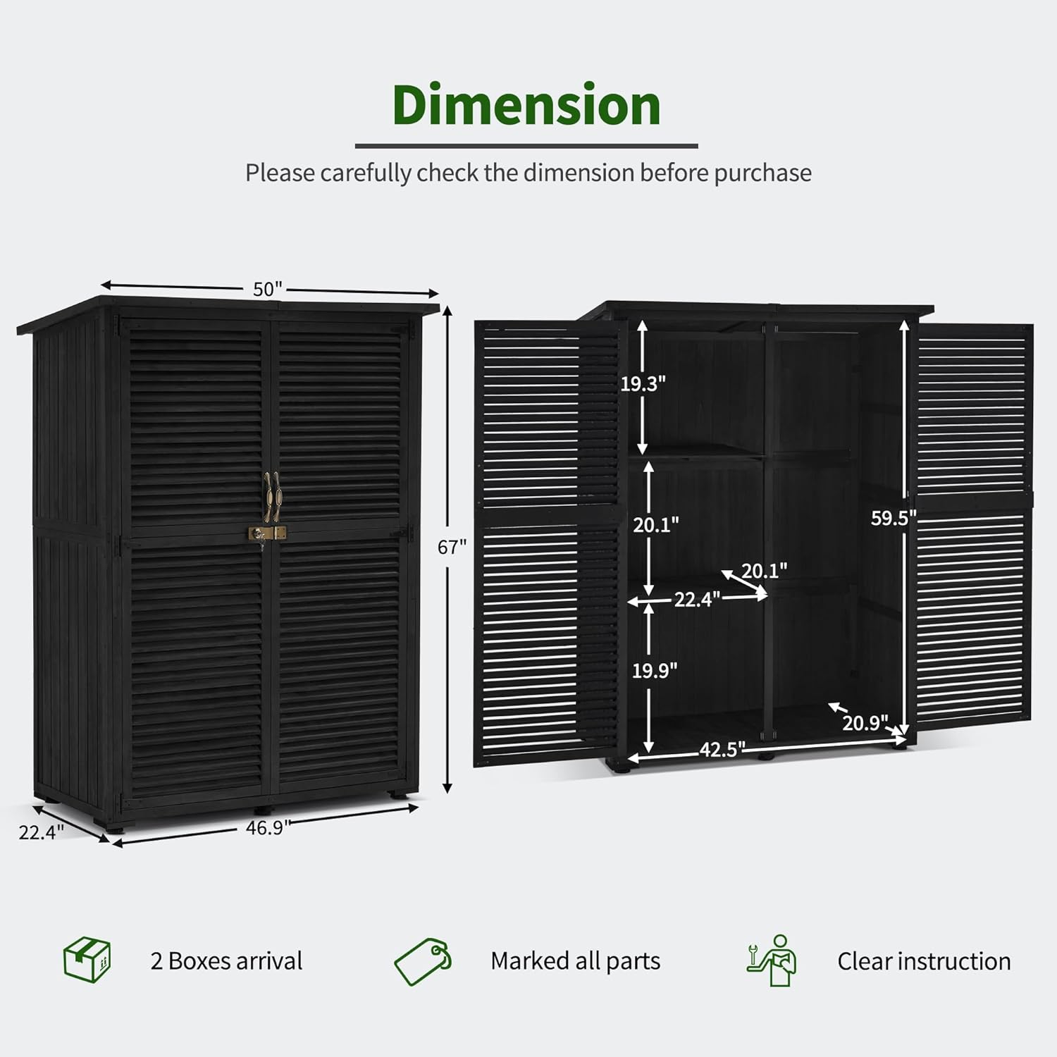 MCombo Outdoor Storage Cabinet, Wooden Storage Shed with Latch, Outside Garden Tool Shed with 2 Doors for Patio Yard Lawn, 1900 (Black, Large)
