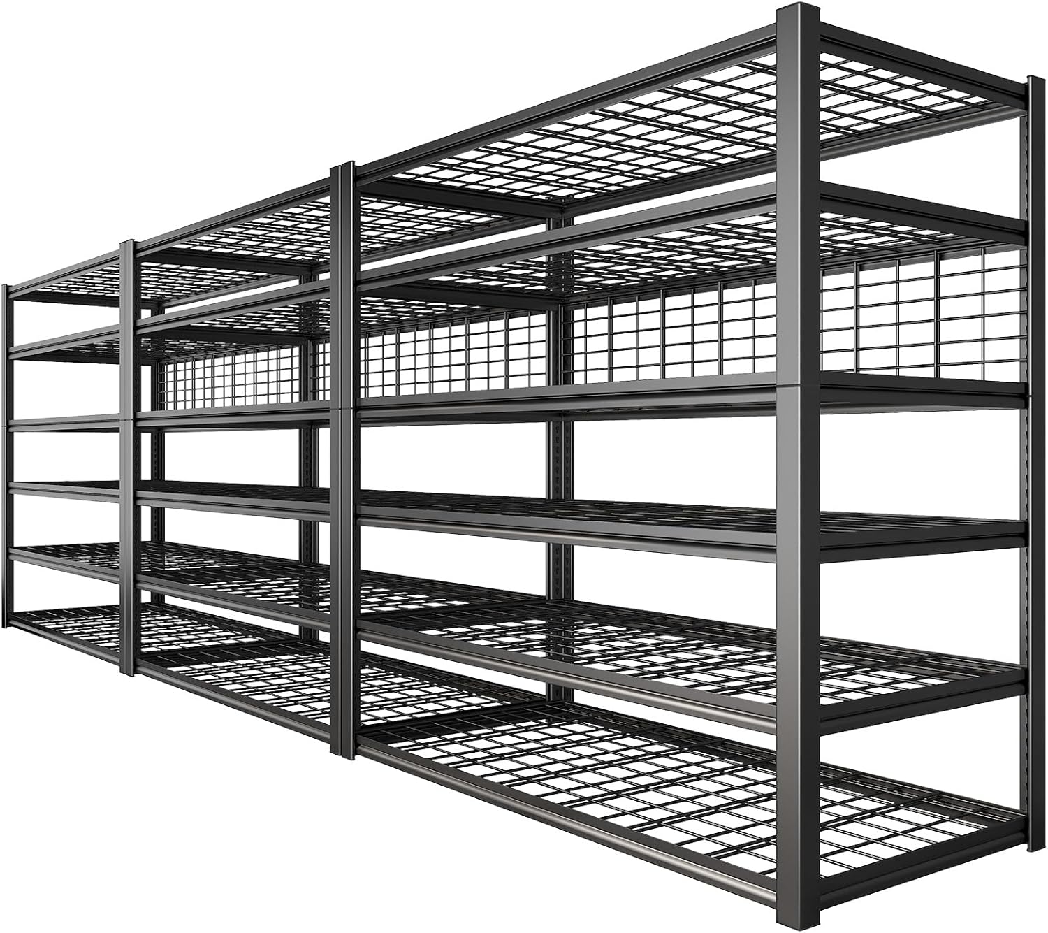 - 【6-tier Height-Adjustable Storage Shelves & Split into 2 Shelving Unit】Adjustable and detachable design allows you to customize this garage shelving according to your preferences, you can easily adjust up or down to accommodate your need and store items of different sizes. This adjustable heavy duty shelving can be assembled into any shape you need. Two heavy duty shelf can be placed together, or one shelf can be disassembled into two shelves for storage.