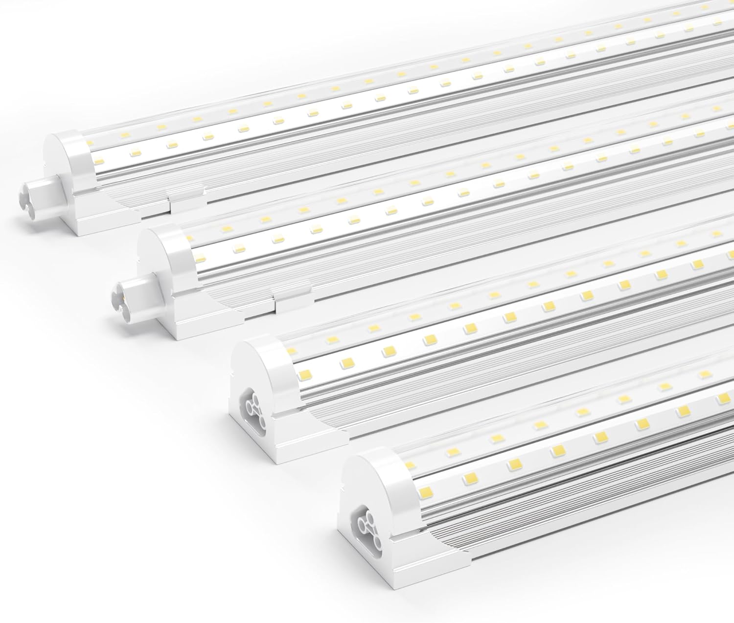 Ensenior 4 Pack 4 FT Led Shop Lights, 6000K Clear White, 5000LM Super Bright, 36W Equivalency 468W, Commercial Bay Lighting, U-Shaped Linkable Shop Lights Plug in for Garage, Workshop, FCC Certified