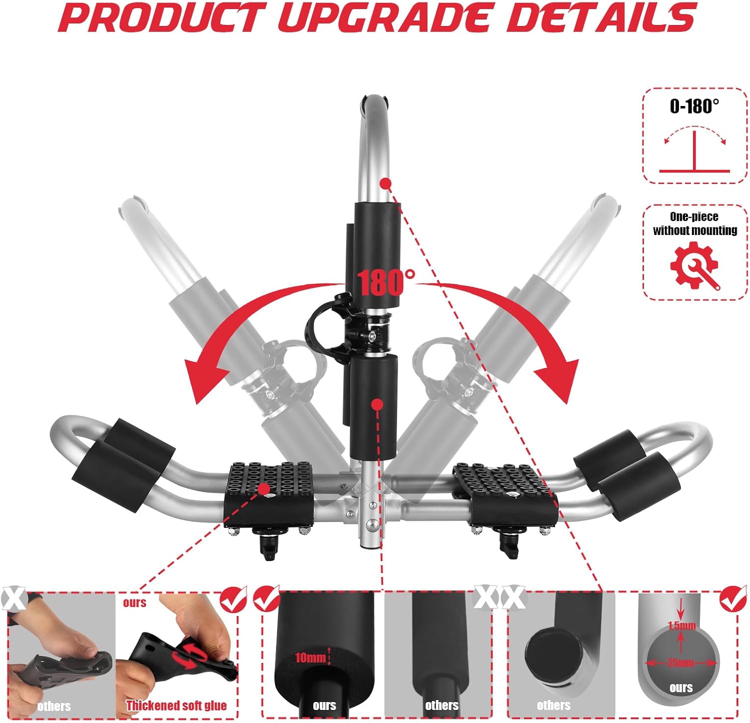 - 【2 In 1 Design】 The rack features a 2-in-1 design for easy installation and robustness.Two kayaks/canoes/boats are carried at the same time, which requires 4 traditional style racks, We only need 2, which is more convenient and easy to enjoy your holiday.