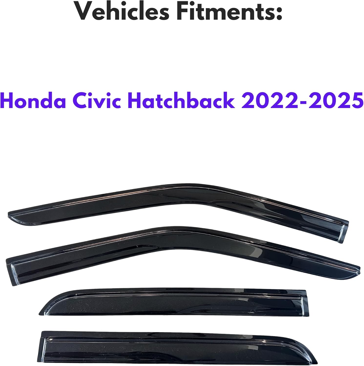 - 【Perfect Fit】KPY window visors rain guards vent deflectors compatible with Honda Civic Hatchback 2022 2023 2024 2025 (Mugen Style)