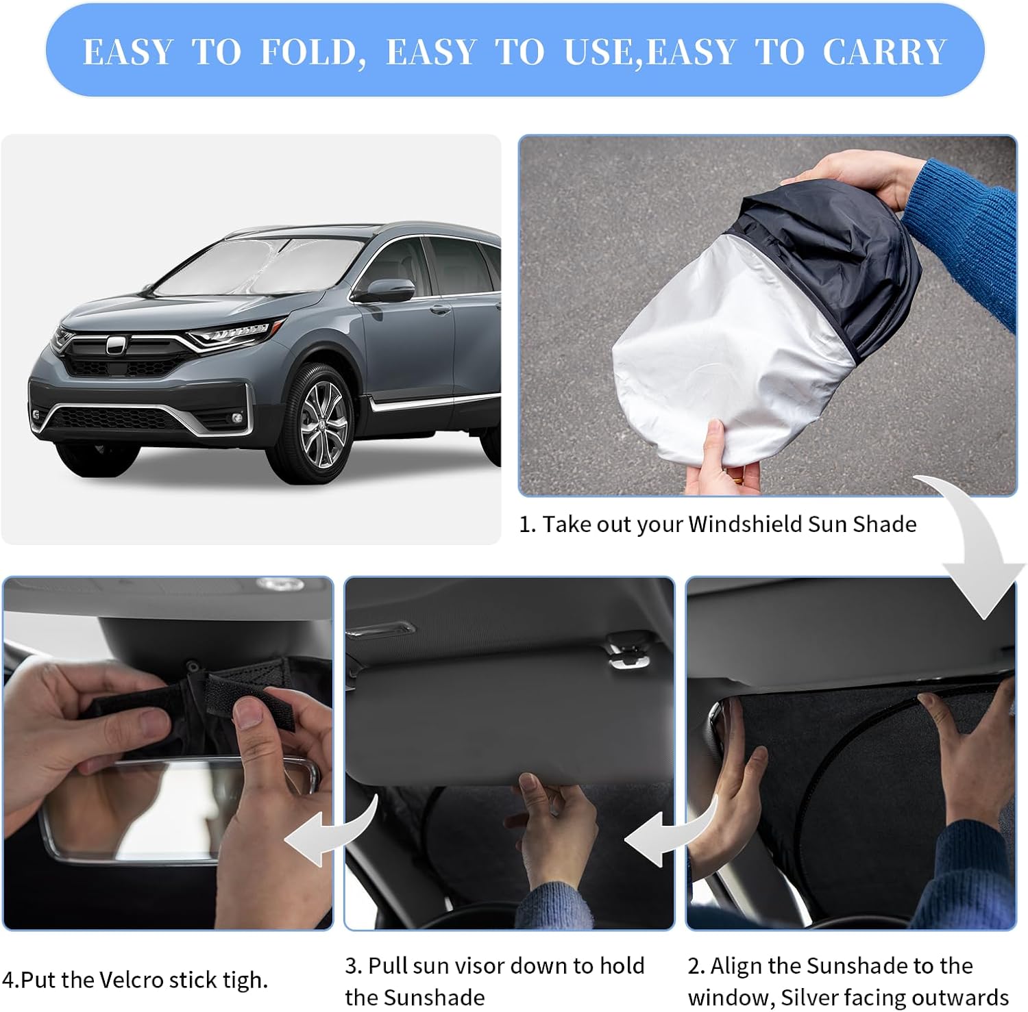 - ăYour Favorite Design ăThe front window shade easily pops out and folds back. Storage pouch is included for easy portability,you will love this designïŒIt is not hard for you to fold.Great heat shield interior+accessories for your car.