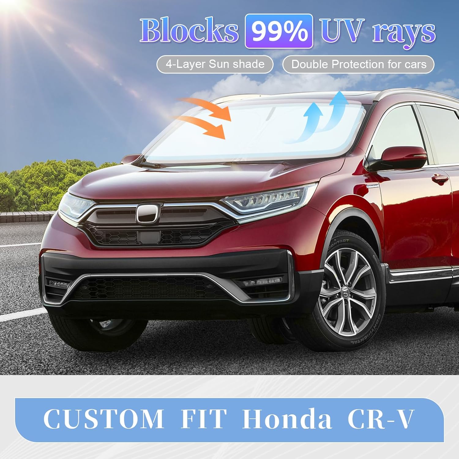 - ăVehicle Specific ăSunshade windshield Custom for 2017-2022 Honda CR-V (LX, EX, EX-L, EX-L Navi, Touring) (Not for 2022 Sport) --You've spent too much time in the California and Texas sun, buy it now, Please donât waste time,reject the heat, quality products - Collapsible sun shade can be full covered on windshield and No gap. Fits like a charmïŒ