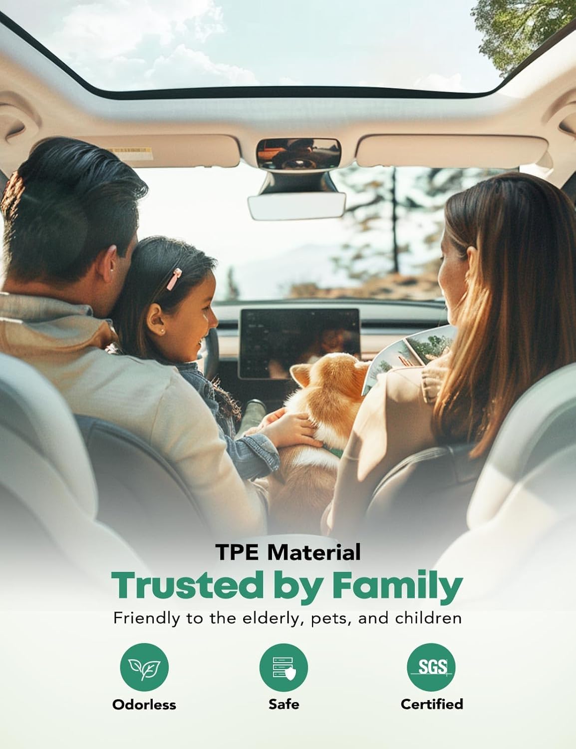 - No Safety Issues: The front and rear floor mats, front rear trunk storage liner, rear lower storage mat are made of Odorless & Healthy TPE mats. All-weather floor mats will not crack in winter. And floor mats will not be deformed or damaged during shipping with double packing