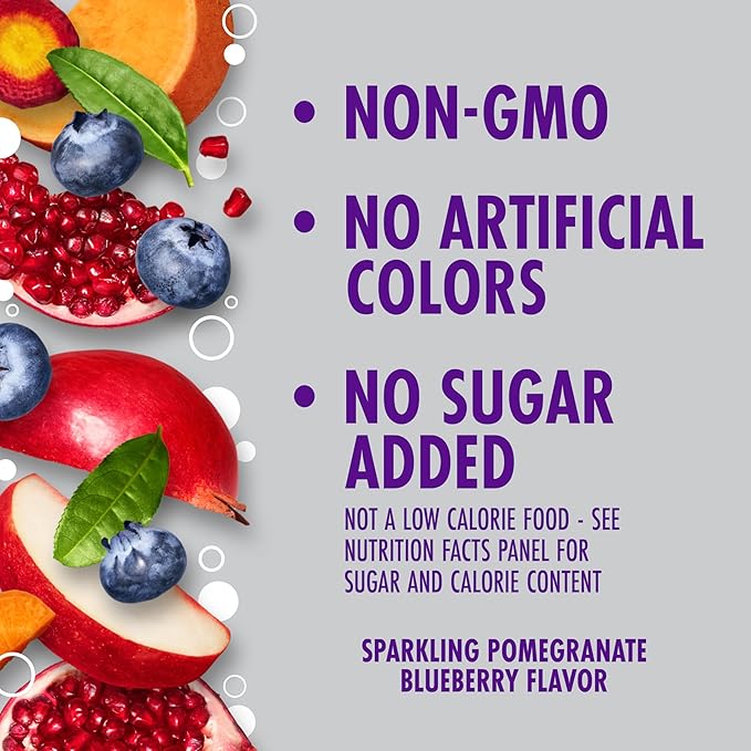- A carbonated vegetable and fruit juice blend infused with natural energy from black and green tea and natural pomegranate and blueberry flavors