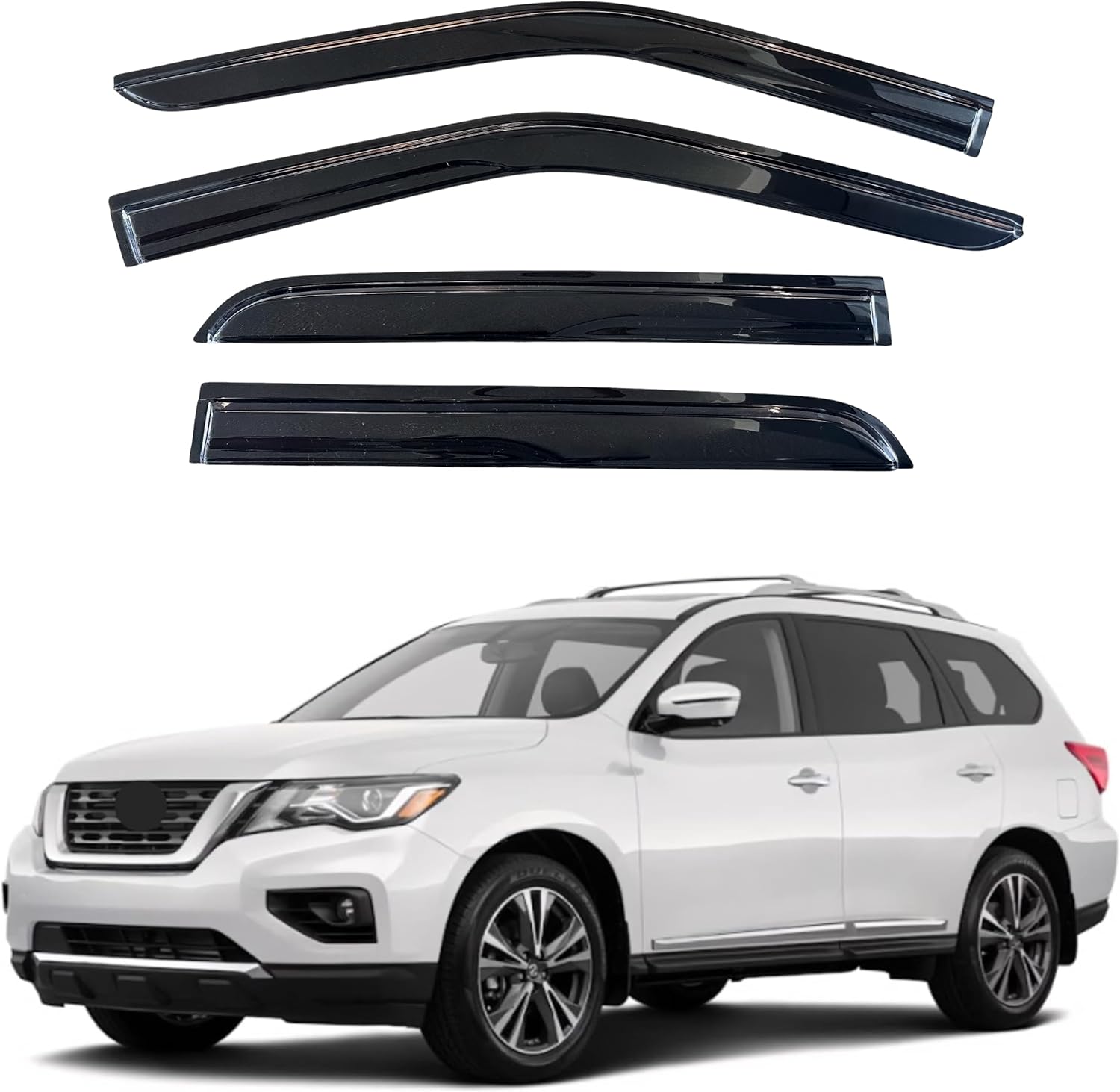 - 【Perfect Fit】KPY window visors rain guards vent deflectors compatible with Nissan Pathfinder 2013 2014 2015 2016 2017 2018 2019 2020 2021 (Mugen Style)