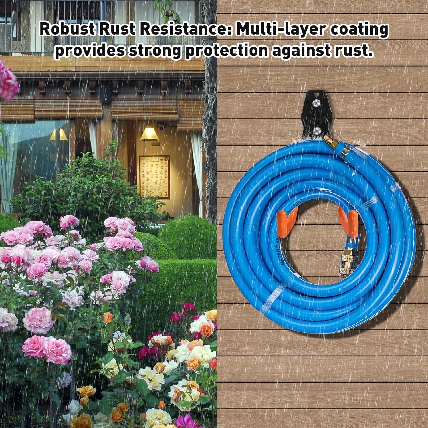 KURUI Heavy Duty Wall Hook for Tool/Water Hose, Garden Hose Holder Wall Mount for Indoors Outside, 2 Pack Garage Storage Hanger for Hanging Shovel/Ladder/Extension Cord, Metal Utility Hook Organizer