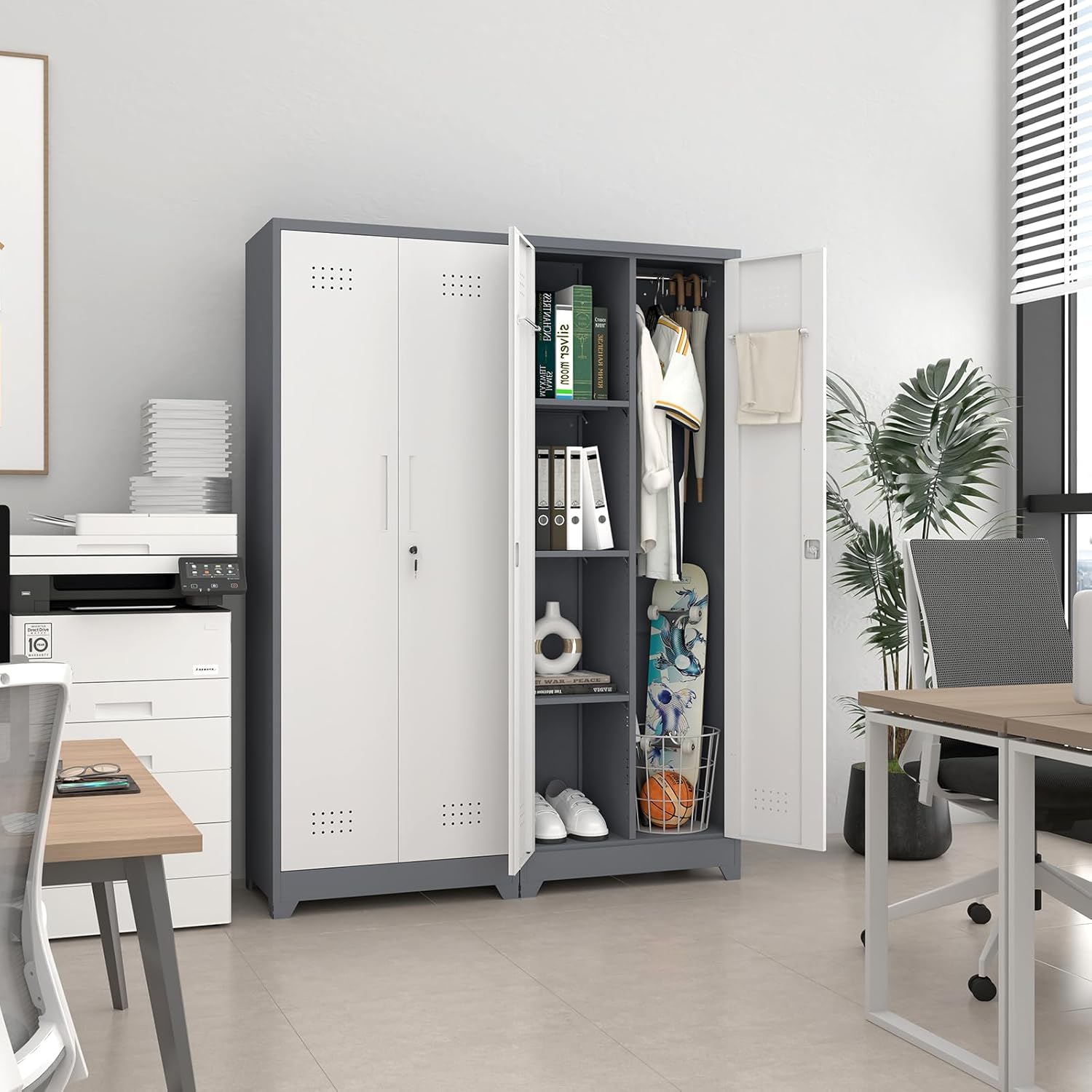 GREATMEET 65" Garage Storage Cabinet, Broom Closet Storage Cabinet, Metal Cabinets with Doors and Shelves, Utility Closet for Brooms and Mops, Utility Cabinets for Storage, Grey&White