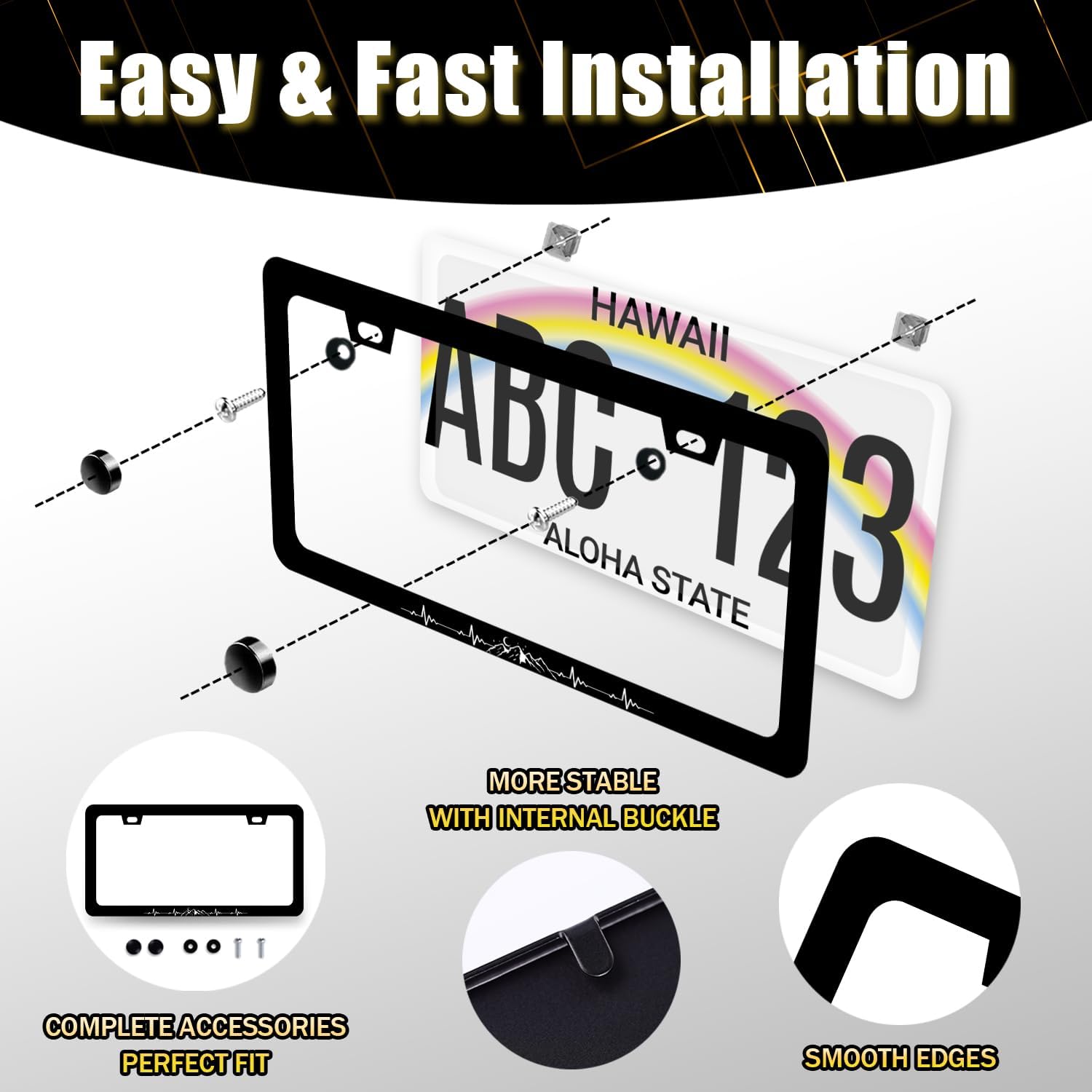 Mountain License Plate Frame Mountains Heartbeat License Plate Holder Colorful License Plate for Car Decoration Stainless Steel Car Accessory with Screws for Men Women 12.3" x 6.3"