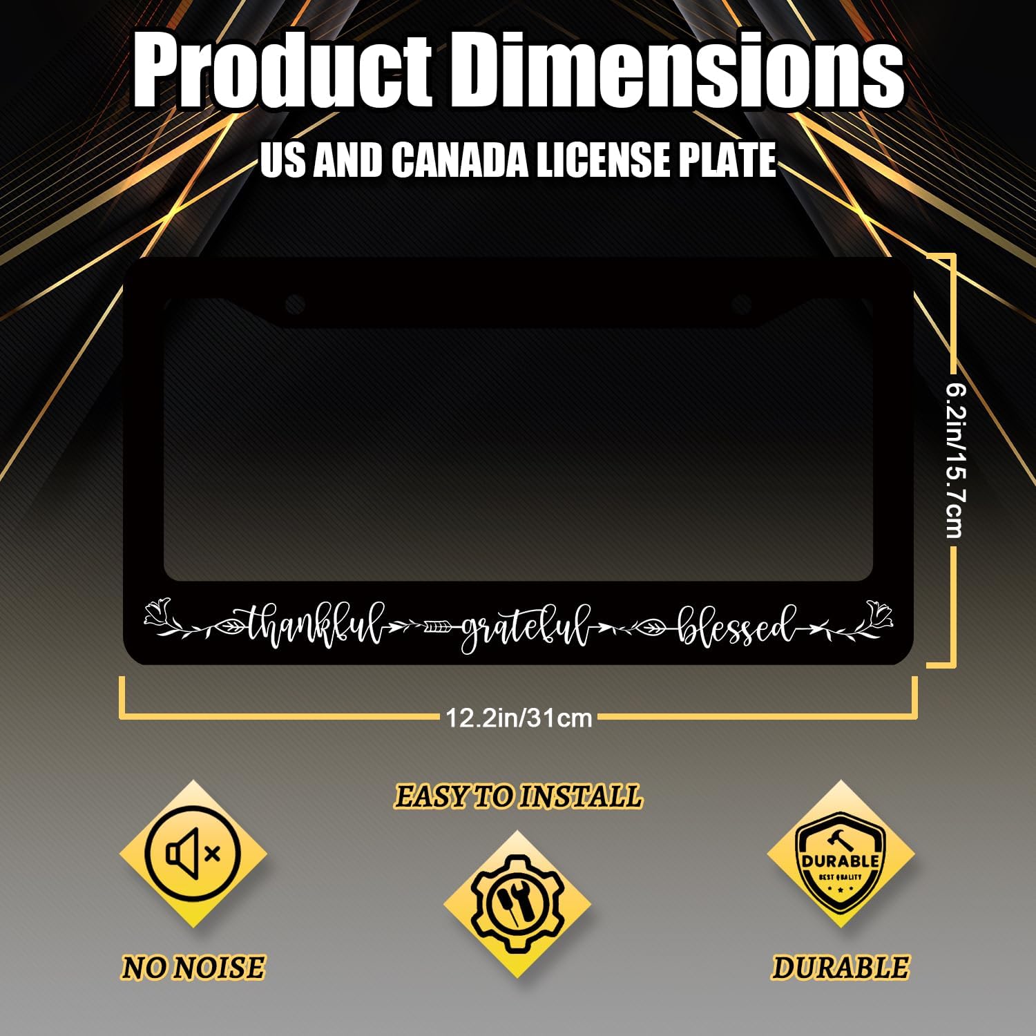 Thankful Grateful Blessed License Plate Frame Christianity License Plate Holder Funny License Plate for Belief Car Decoration Stainless Steel Car Accessory with Screws Men Women 12.3" x 6.3"