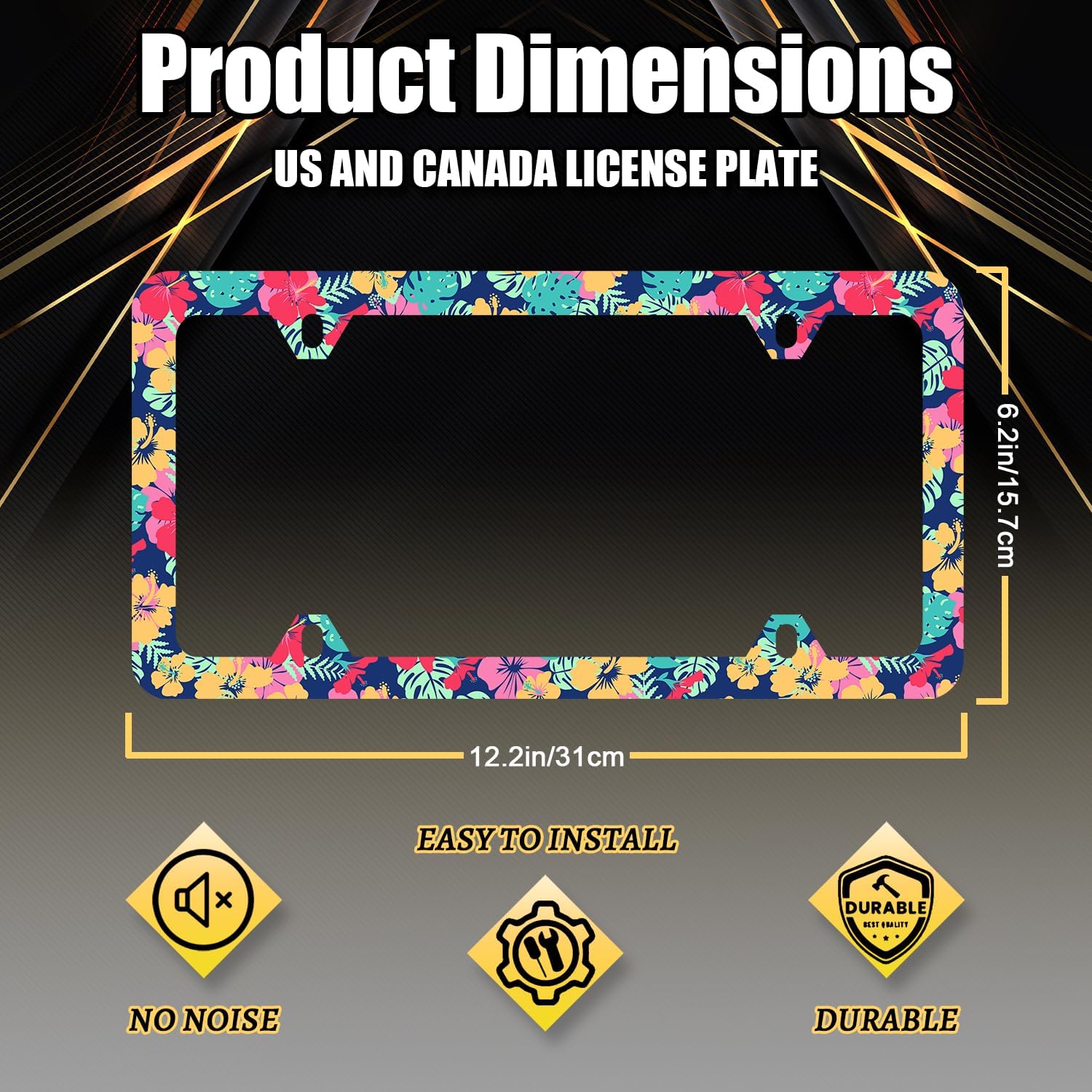 - The size of the license plate frame is: 12.3" x 6.3" , it fits all standard size US vehicle license plates. the stylish design frame fits on your car license plate.