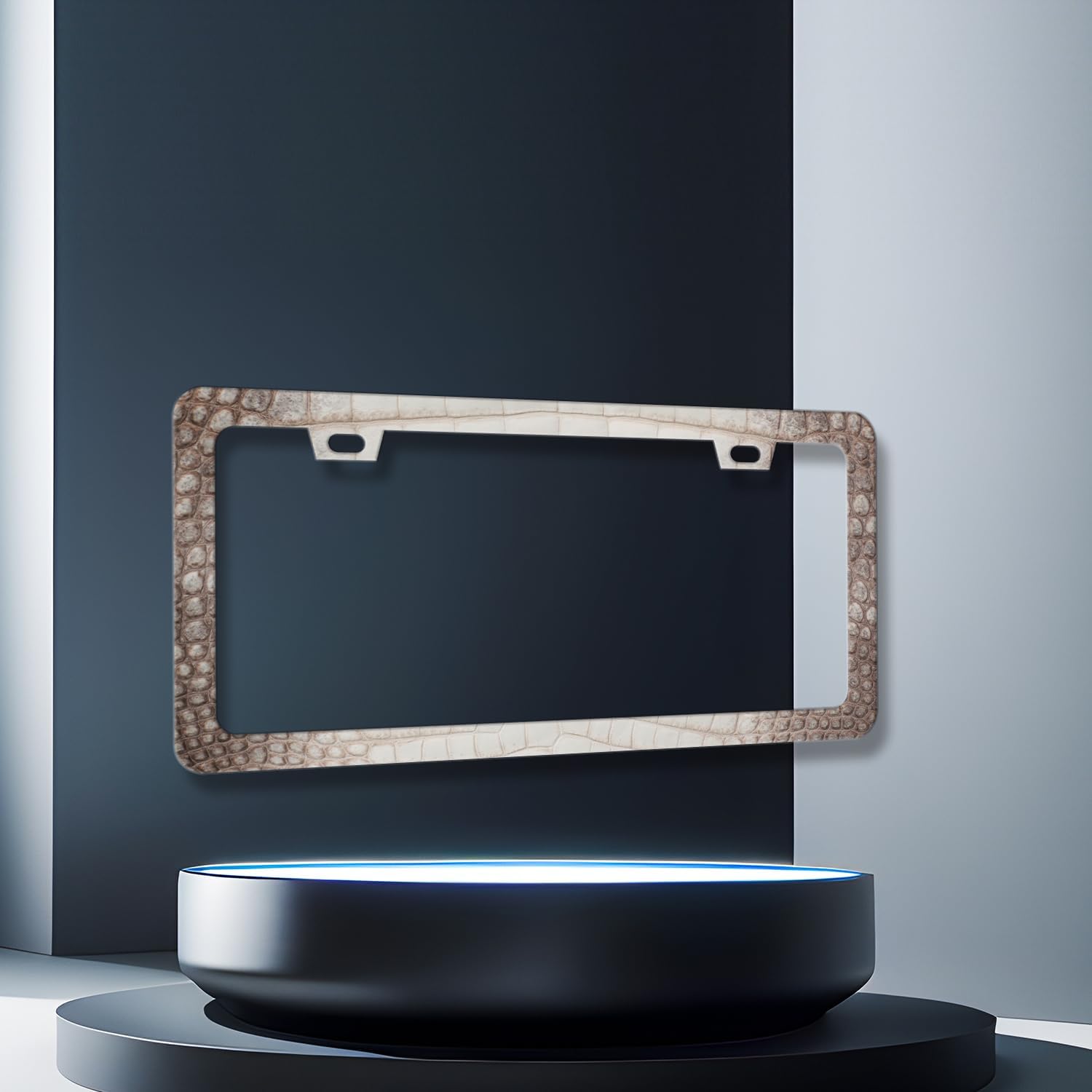 Crocodile Skin Print License Plate Frame Cool Animal Texture License Plate Holder Funny License Plate for Car Decoration Stainless Steel Car Accessory with Screws Men Women 12.3" x 6.3"