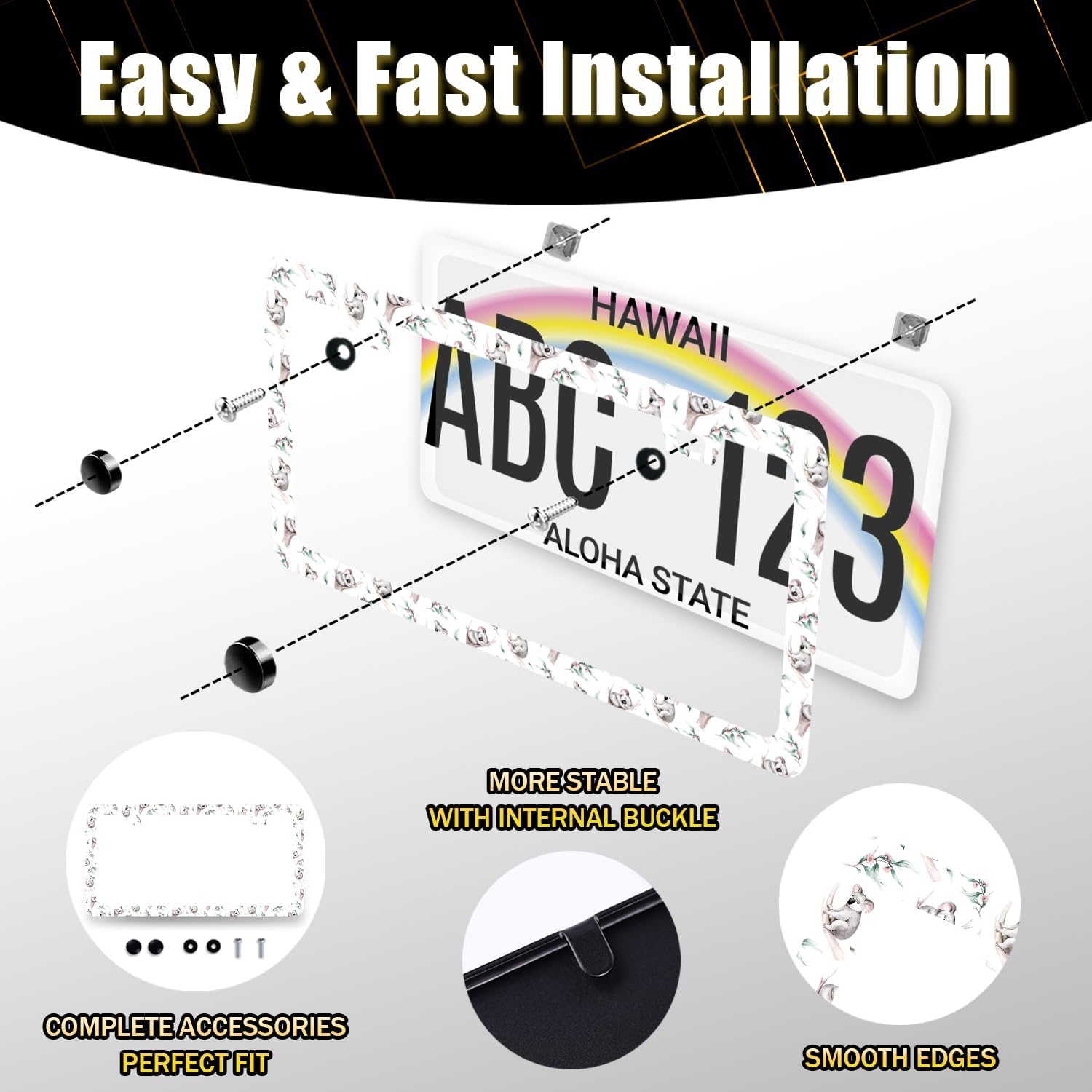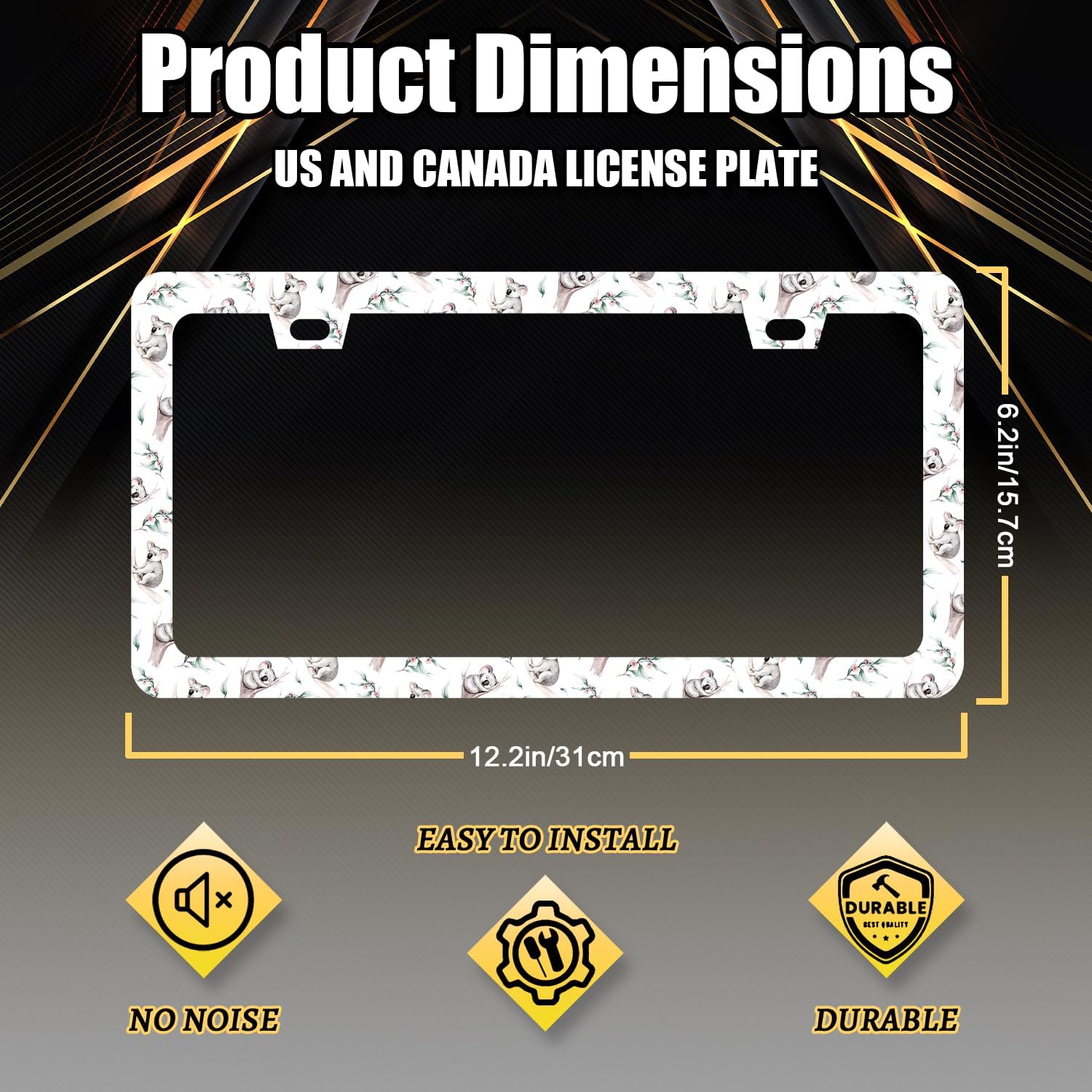 Watercolor Koala License Plate Frame Colorful Animal License Plate Holder Funny License Plate for Car Decoration Stainless Steel Cute Auto Parts with Screws for Men Women 12.3" x 6.3"