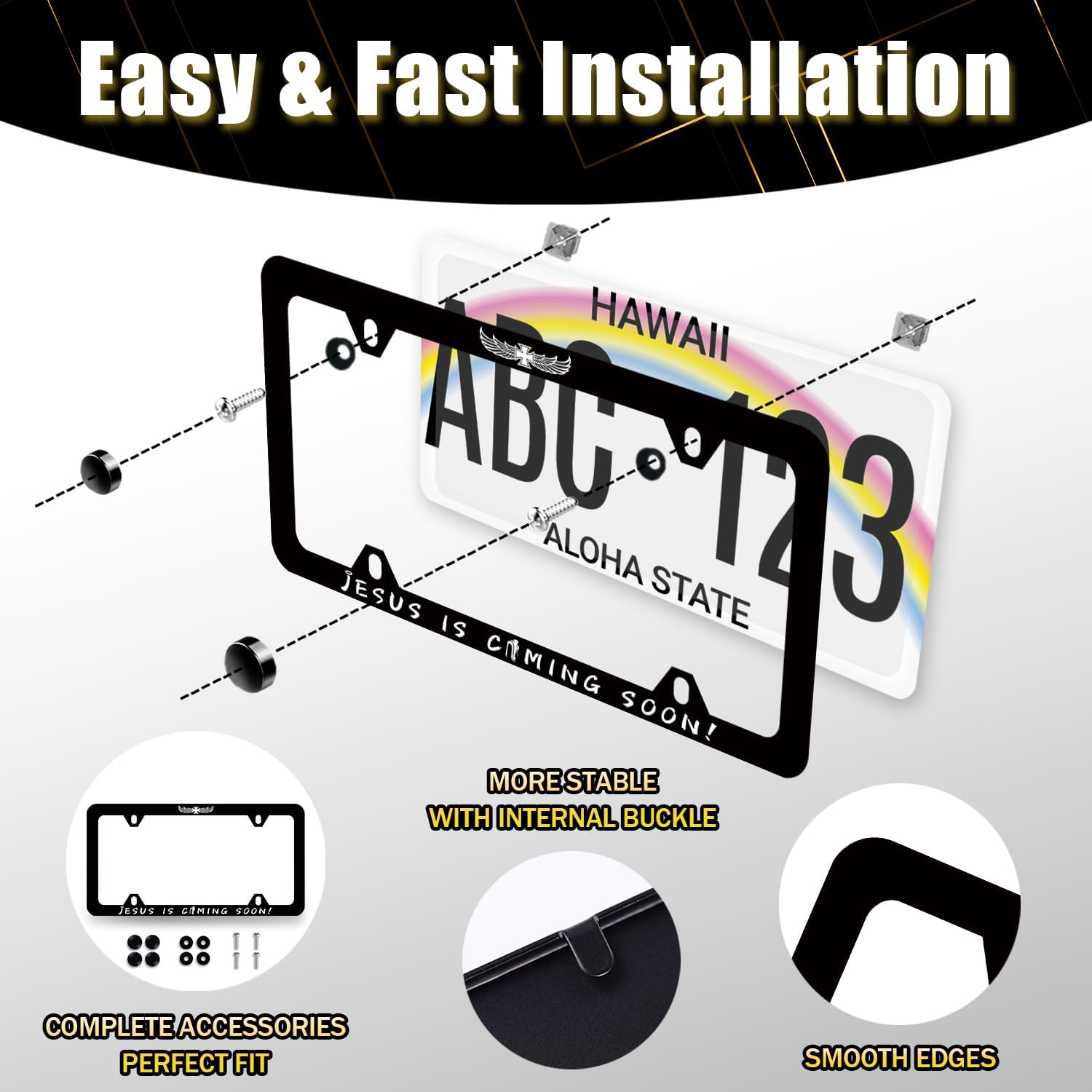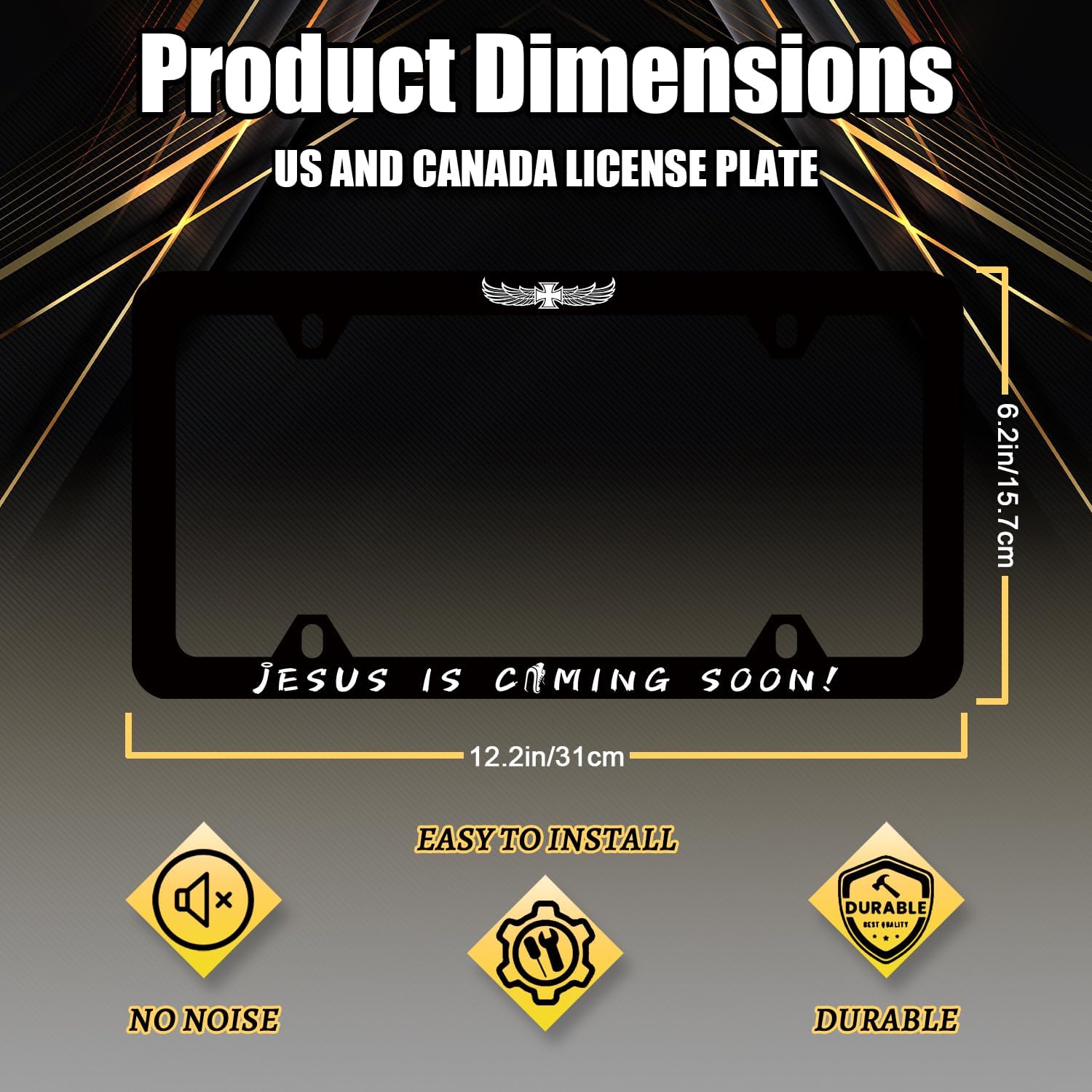 Jesus is Coming Soon License Plate Frame Christian Cross License Plate Holder Funny License Plate for Car Decoration Stainless Steel Religion Car Accessory with Screws Men Women 12.3" x 6.3"