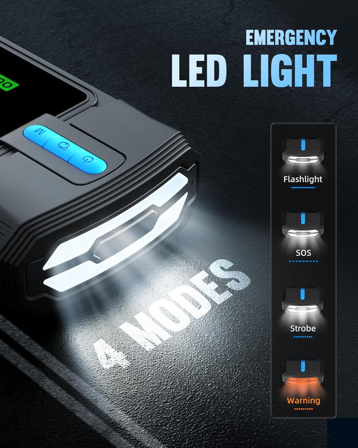 - Guarding Your Safety-The upgraded smart chip in the next-generation emergency start battery pack equips you to effortlessly tackle various situations and swiftly jump-start your vehicle. With 10 integrated safety protection technologies—including safeguards against overcharge, overcurrent, short circuit, reverse connection, low and high temperatures, overvoltage, overload, anti-spark, and reverse charge—alongside automatic connection detection and real-time visible alerts, this portable car battery charger jump starter guarantees 100% safety and eliminates any risk of sparking