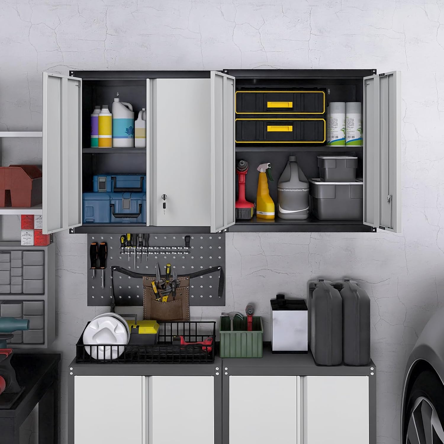 LUCYPAL Garage Wall Cabinet,Metal Wall Storage Cabinet with Adjustable Shelf and Locking Doors,Floating Utility Cabinets for Warehouse/Basement/Kitchen (Black&Grey,27.95" H)