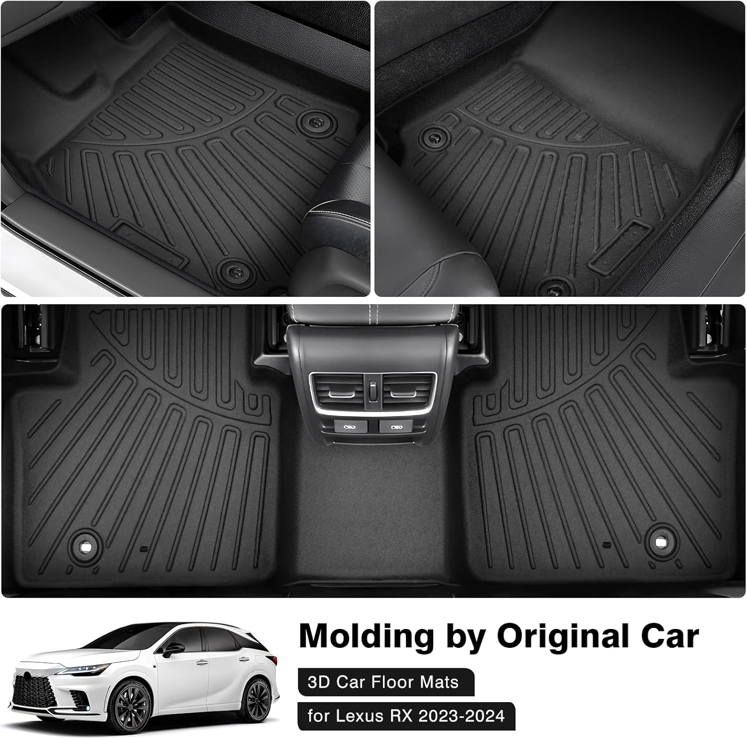 Powerty Floor Mats for 2023 2024 2025 Lexus RX RX350 RX350h RX500h (NOT for RX450h+ PHEV) Accessories All Weather Floor Liner 3D TPE 1st & 2nd Row Floor Mat Heavy-Duty Floor Liners