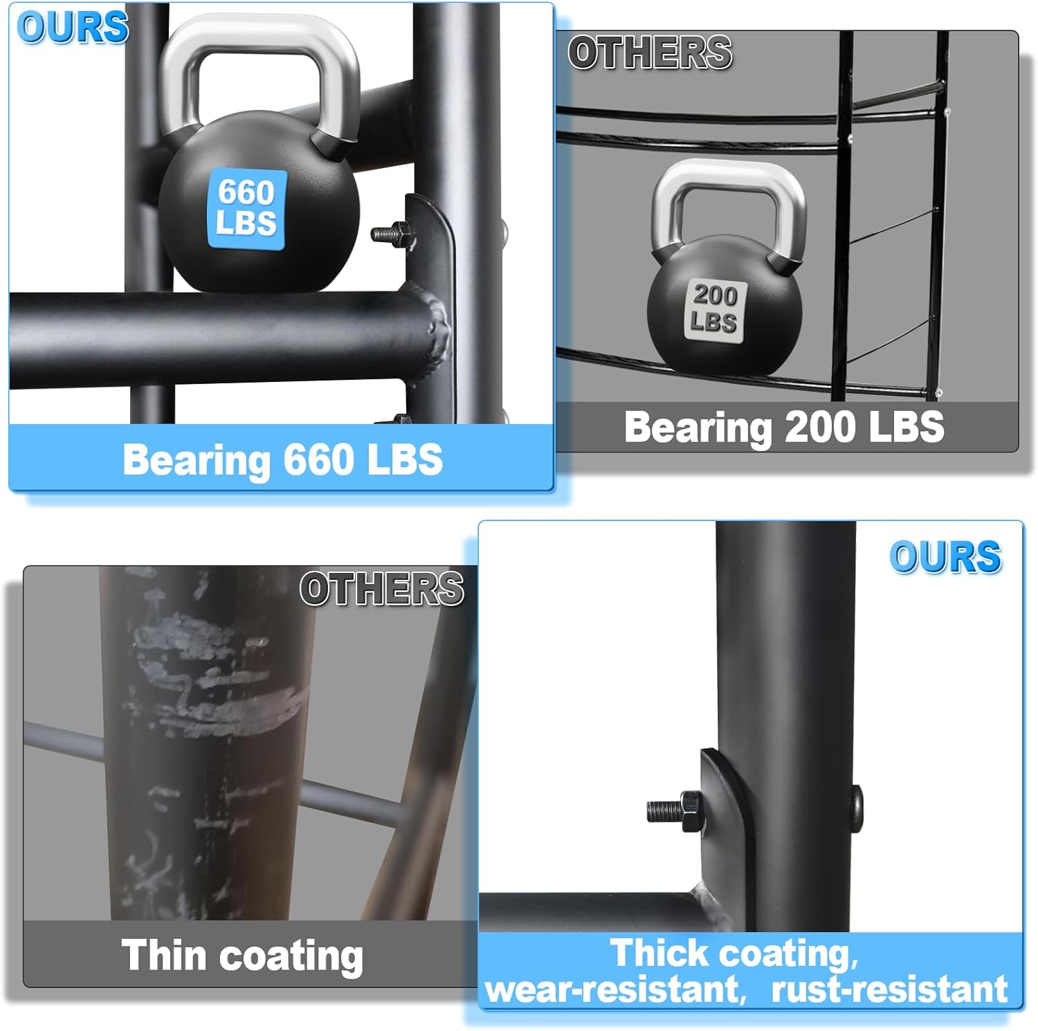 - Strong load-bearing: Constructed from thickened metal to accommodate heavy tires, our tire rack for garage boasts a maximum load capacity of 660 pounds, reliably storing your tires with confidence