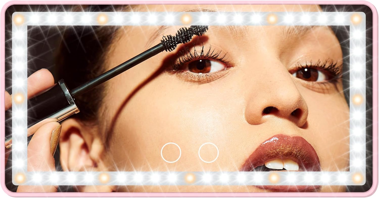 - DIMMABLE BICOLOR LED LIGHTS: The car makeup mirror has 12 yellow lights and 48 white lights, which is 40% brighter and 60% less energy than normal bulbs. Short press the 2 sensor switches to replace 3 light colors: white, yellow, white and yellow. Long press for dimming according to what you need. 2500-6500K color temperature is equivalent to outdoor sunlight, the makeup is naturally no difference