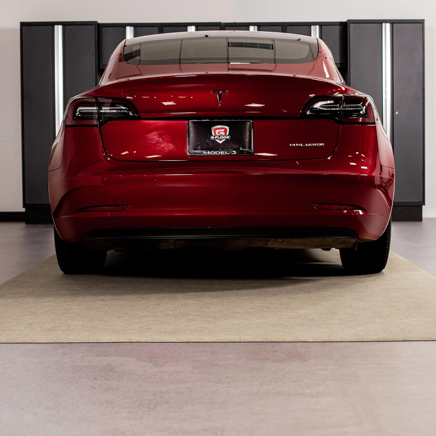G-Floor Drip & Dry Absorbent (7'6" x 17', Tan) Floor Mat with Waterproof Vinyl Backing for Protecting Your Garage Floor - Just Unroll to Install!