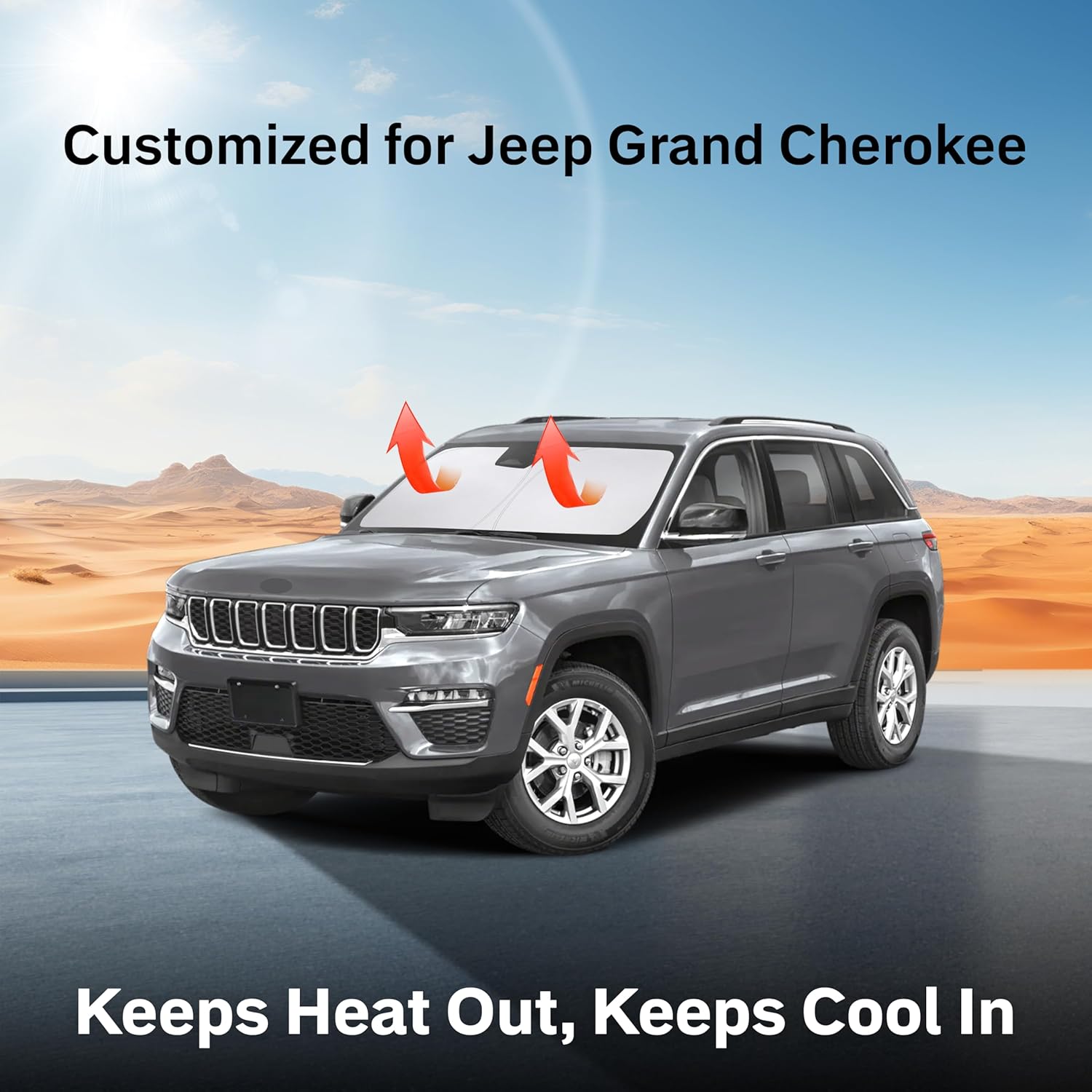 - Custom-Fit Design: Designed for a precise fit, this Jeep Grand Cherokee 2011-2025 (Not for Grand Cherokee L & Jeep Cherokee) windshield sunshade ensures maximum coverage and protection against the sunβs damaging rays.