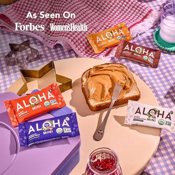 ALOHA Organic Plant Based Protein Bar MINIS |Caramel Chocolate Pecan | 20 Count, 24g Bars | Vegan, Low Sugar, Gluten Free, Low Carb, Non-GMO, Stevia Free, Soy Free, No Sugar Alcohols