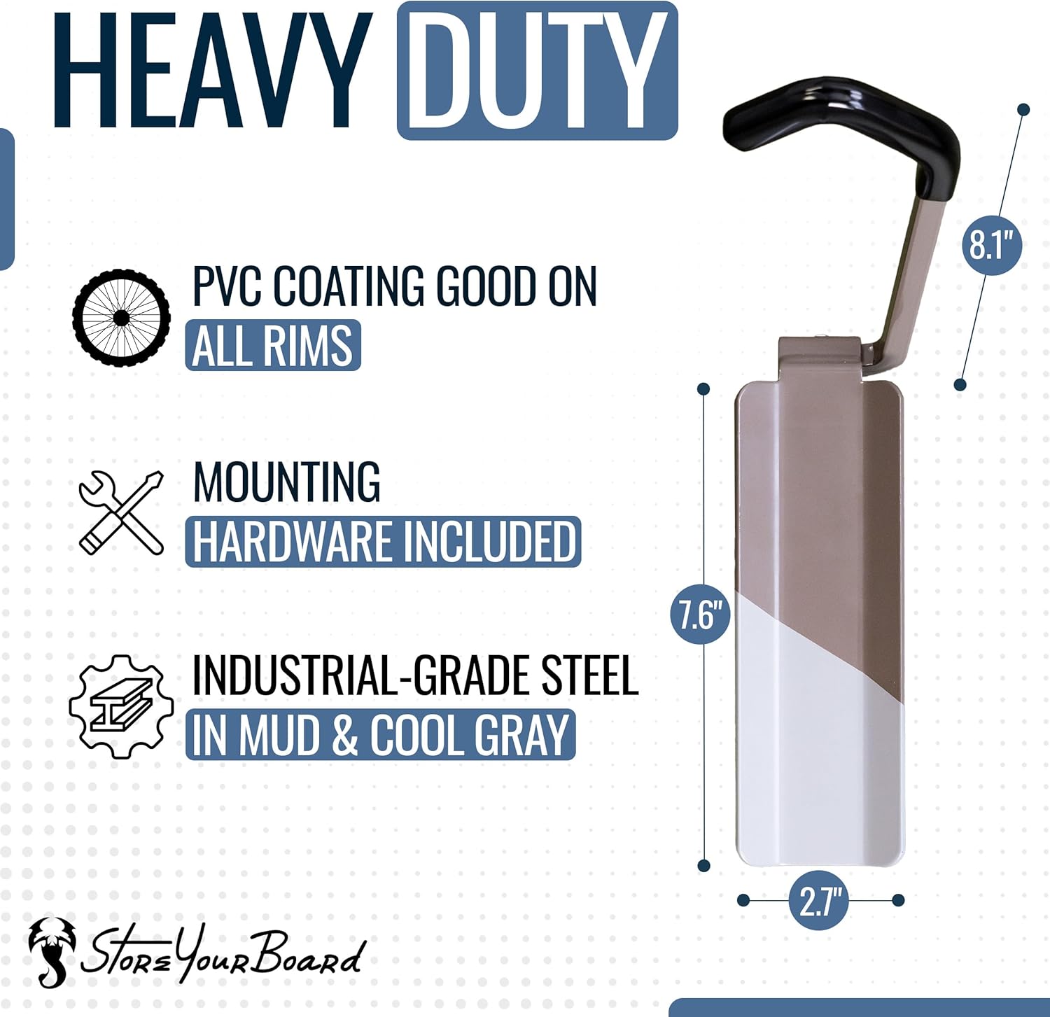 • HEAVY-DUTY PERFORMANCE – Crafted from powder-coated steel and built to last, each bicycle hanger holds up to 50 lbs of bike weight. The rubber-coated bike hook is gentle on rims, including carbon, and helps prevent scratches or damage. No plastic parts, just solid, welded construction built for long-term indoor bike storage.