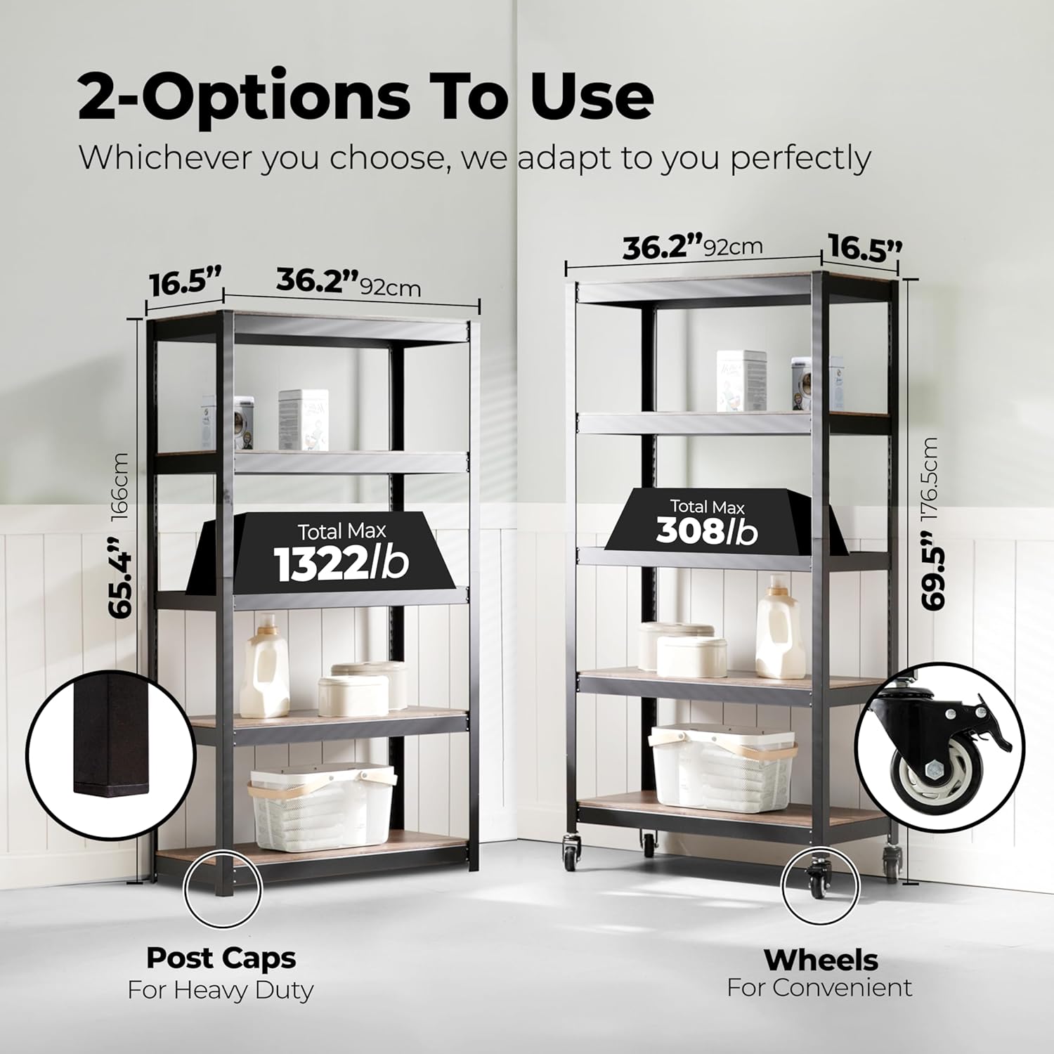 HOMEDANT House 5-Tier Metal Rolling Cart Shelf Rack Casters Heavy Duty Wheel Shelving Unit Adjustable Utility Storage Shelves Organizer Shelf Kitchen Garage 36.2" W x 16.5" D x 69.5" H 10Pack