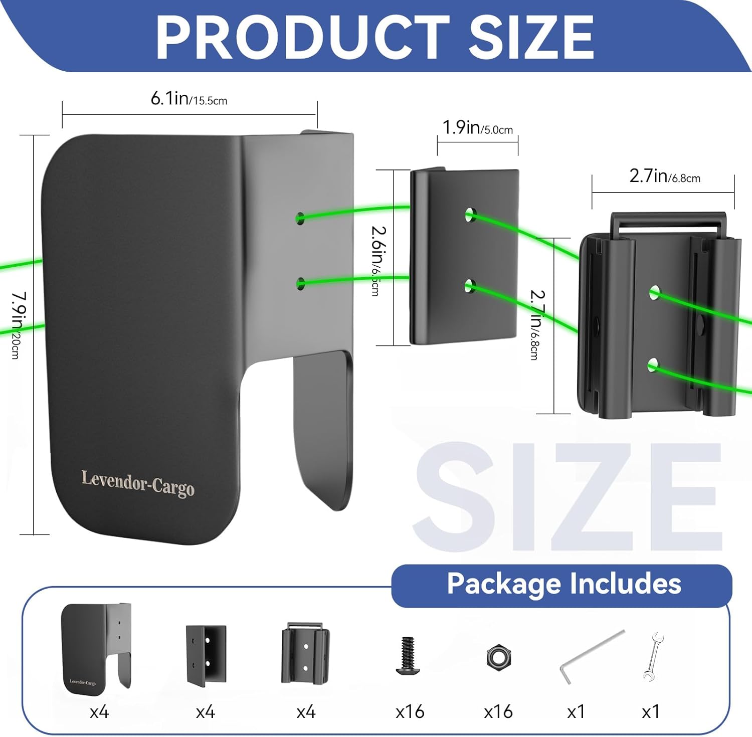- You will received : 4 x E Track Wheel Chocks๏ผ4 x E-Track Mounts, 4 x 45 Degree Angle Adapter,16 x Screw with Nuts, 1 x Wrench, 1 x Hexagonal Wrench