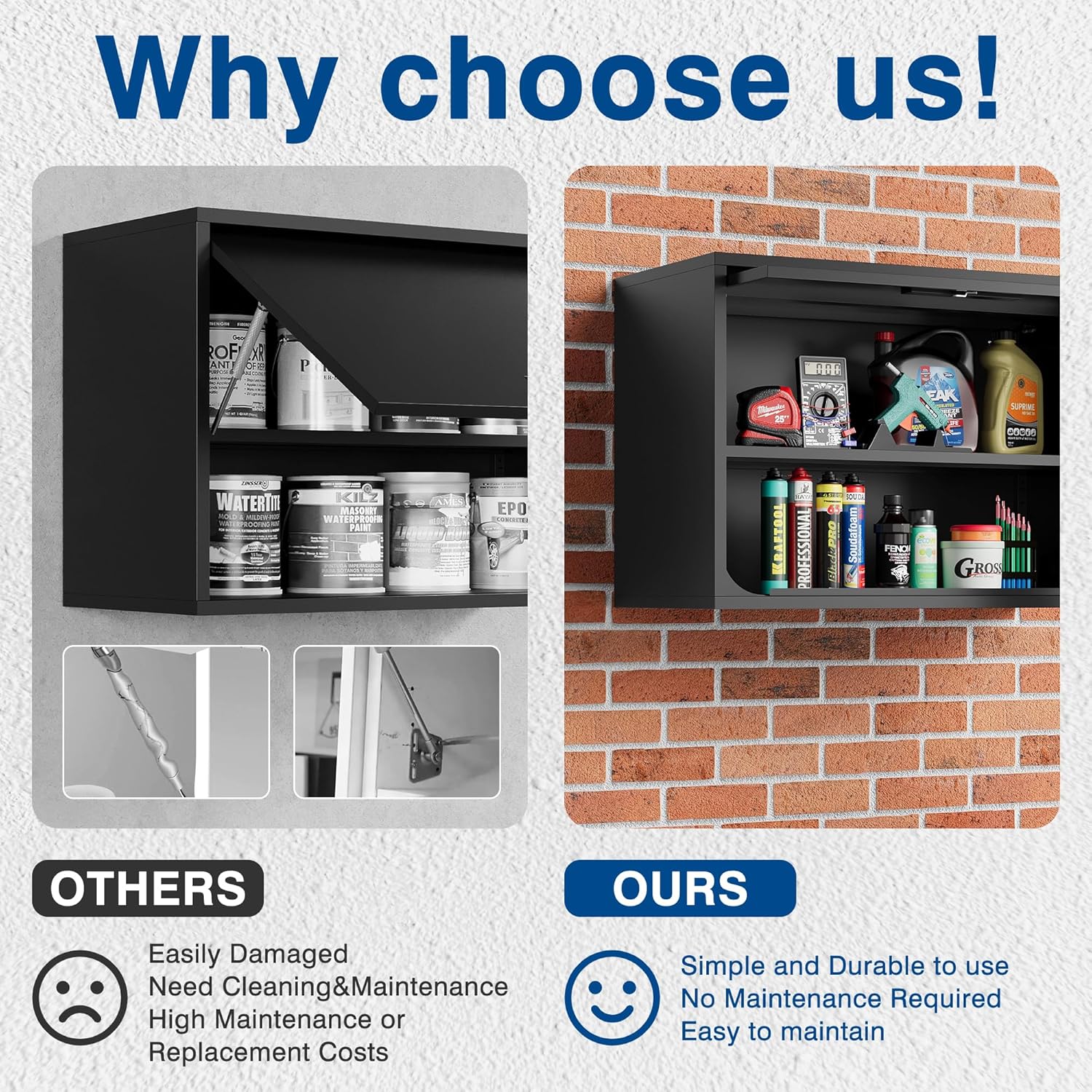 - Revolutionary Upgraded Opening and Closing System: Traditional left-right opening methods carry a risk of bumping heads. Our storage cabinets feature a unique top-bottom opening mechanism, where the entire door can be recessed into the cabinet itself, making full use of upper space and facilitating easy access to items stored inside.