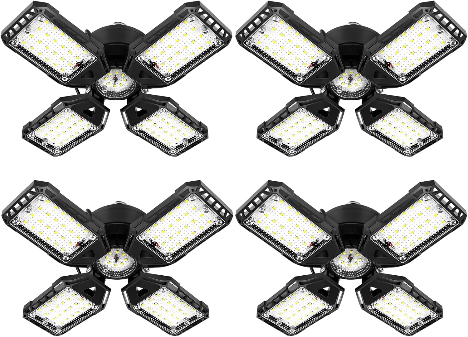 LED Garage Lights 4 Pack -120W, 12000LM 6500K Led Shop Light with 4+1 Deformable Panels, Basement Barn Light Garage Ceiling Lights, E26/E27 for Garage, Warehouse, Shop