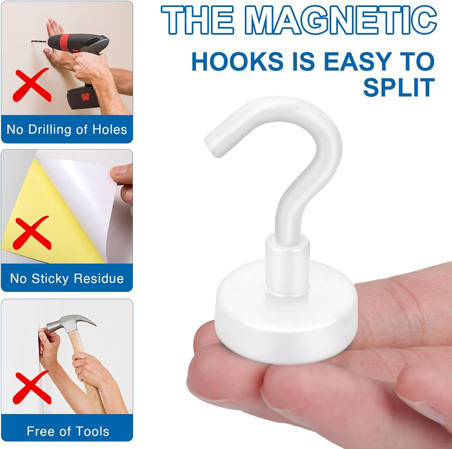 - 【MULTIPLE COLOR OPTIONS】We have upgraded the colors based on the strong magnetic force of the strong magnetic hooks, and there are multiple colors available for you to choose from in the store: black, silver, blue, white, green, red, yellow, and purple. LOVIMAG magnetic hooks add vitality to your life.