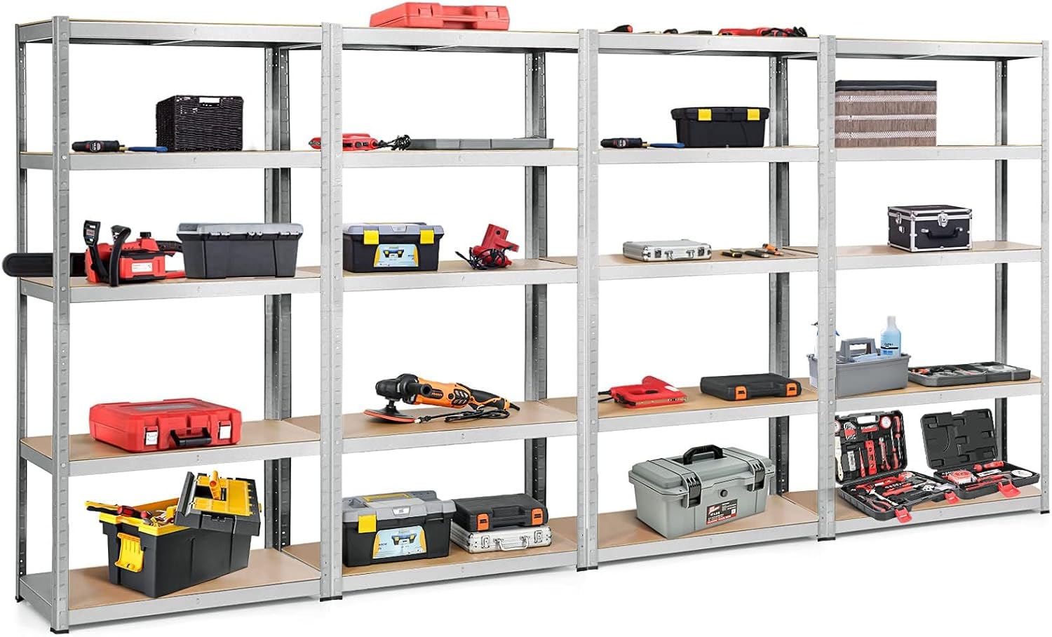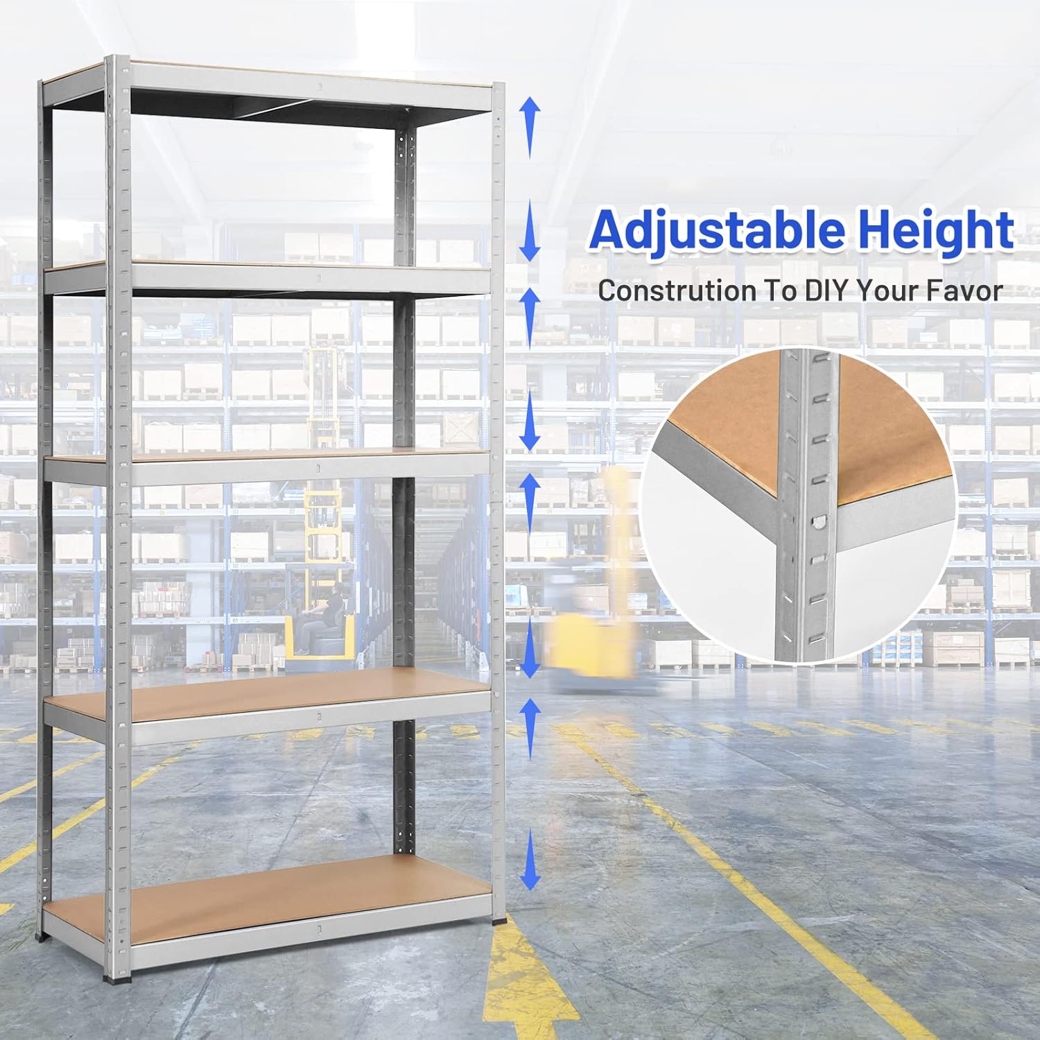 ERGOMASTER 72" Storage Shelves, Heavy Duty Steel Frame 5-Tier Garage Shelf, Metal Multi-Use Storage Shelving Unit for Home/Office/Dormitory/Garage (4, Silver)