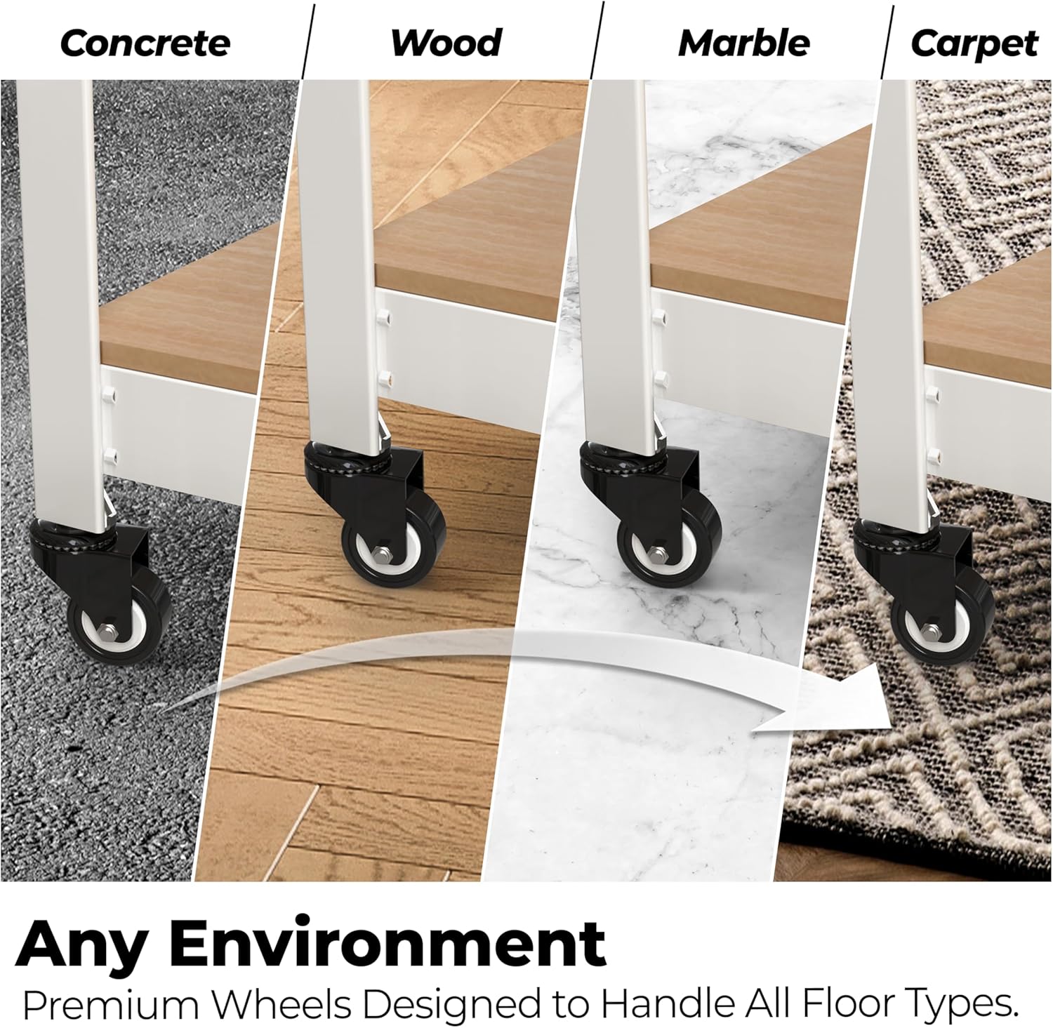 HOMEDANT House White 5-Tier Metal Rolling Cart Shelf Rack Casters Heavy Duty Wheel Shelving Unit Adjustable Utility Storage Shelves Organizer Shelf Kitchen Garage 24.4" W x 16.5" D x 62.2" H 3Pack