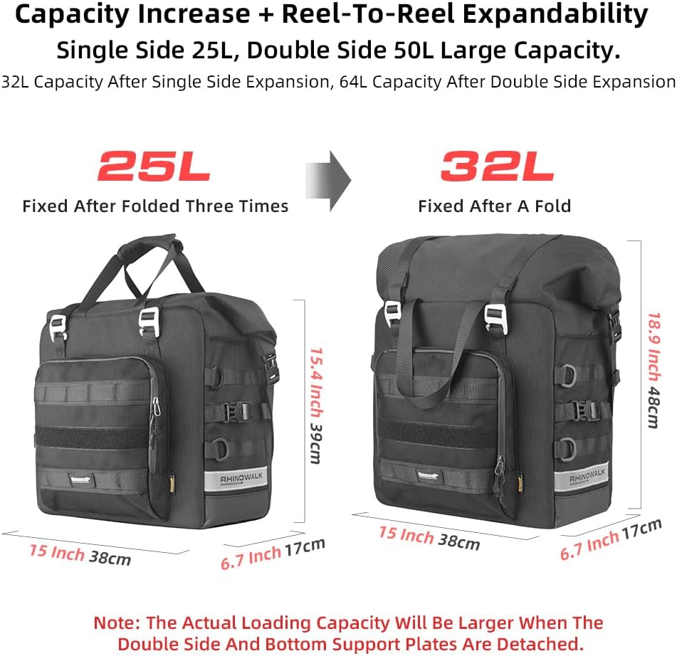 Rhinowalk Motorcycle Saddle Bag Waterproof Motor Pannier Bag Luggage Pack Quick Release Motorbike Side Bag 25L (Black)