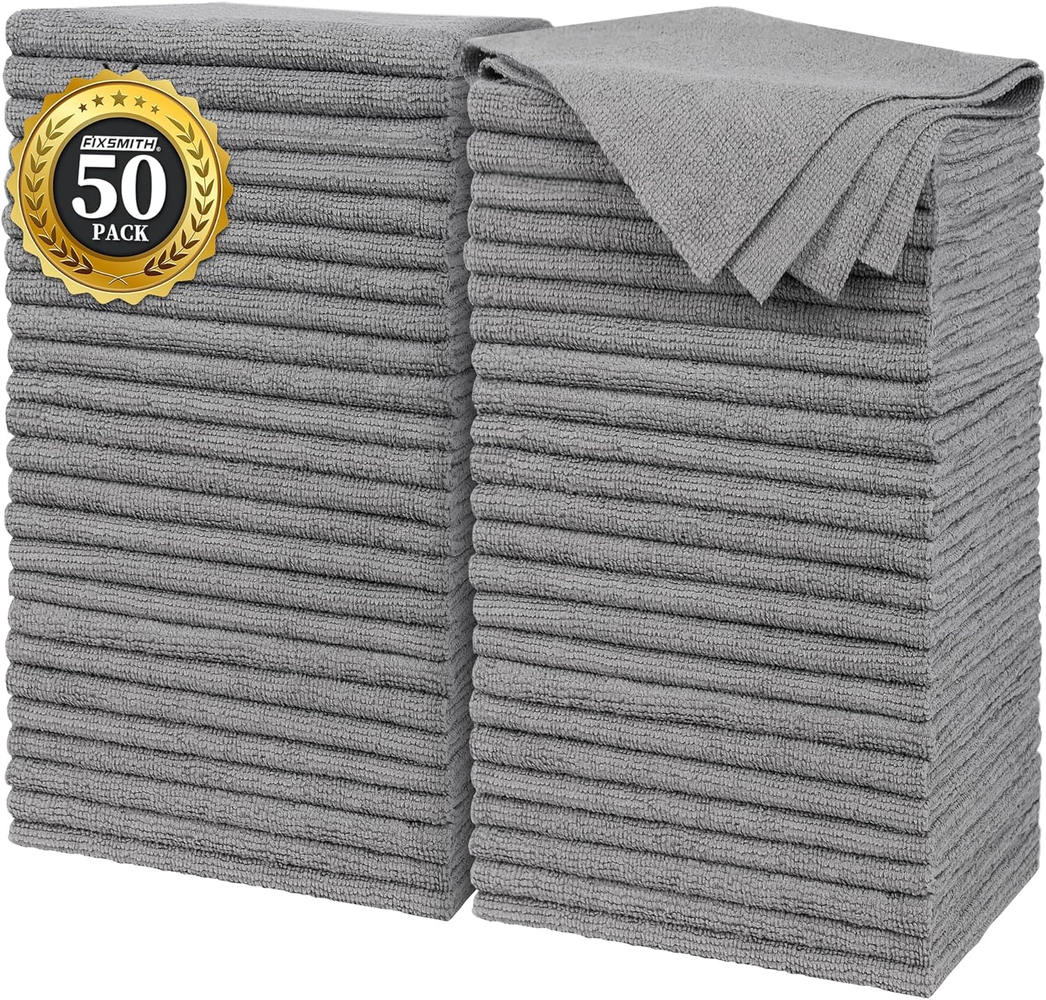 FIXSMITH Grey Microfiber Cleaning Cloth, Pack of 50, 16"X12" Cleaning Rags for Housekeeping and Kitchen, Reusable Shop Towels, Microfiber Towels for Cars, Lint Free, Scratch-Free, Highly Absorbent