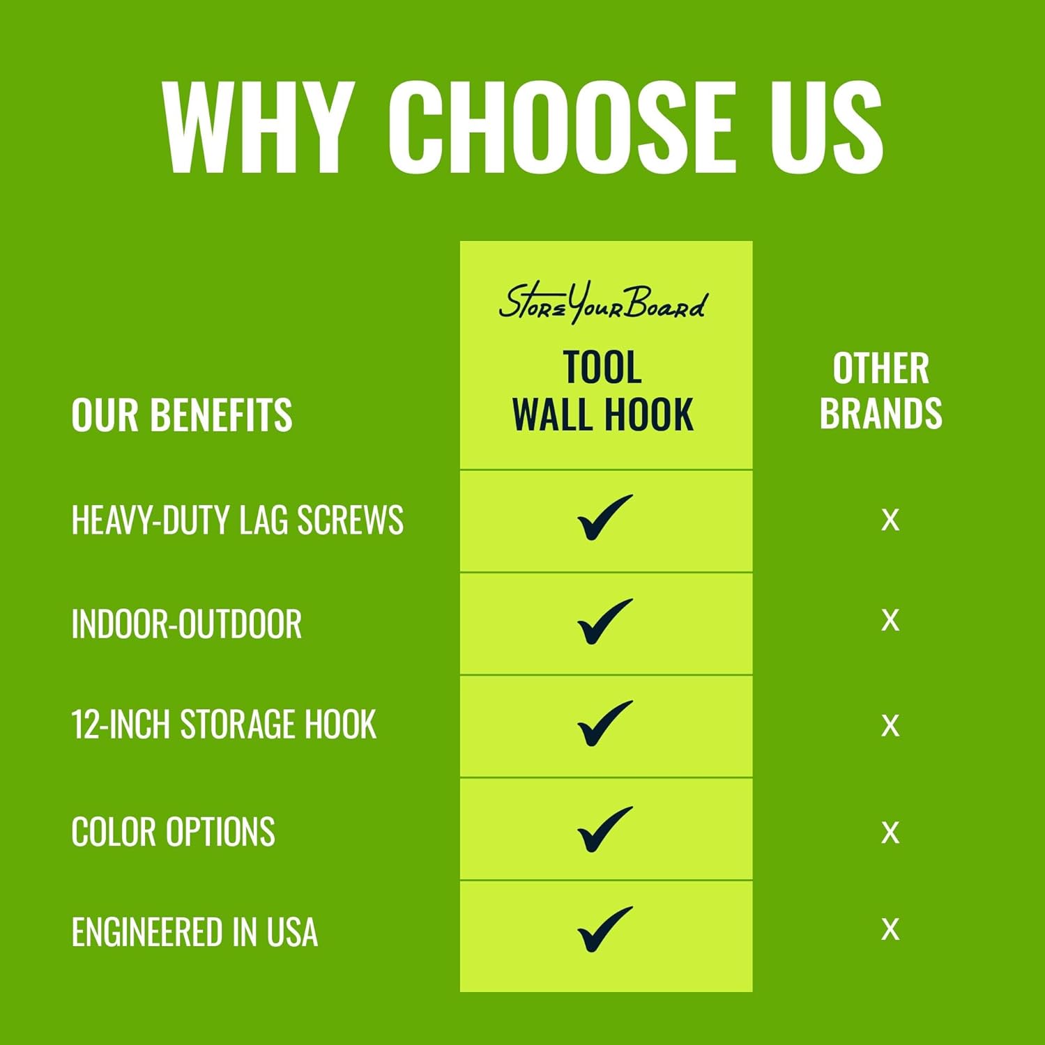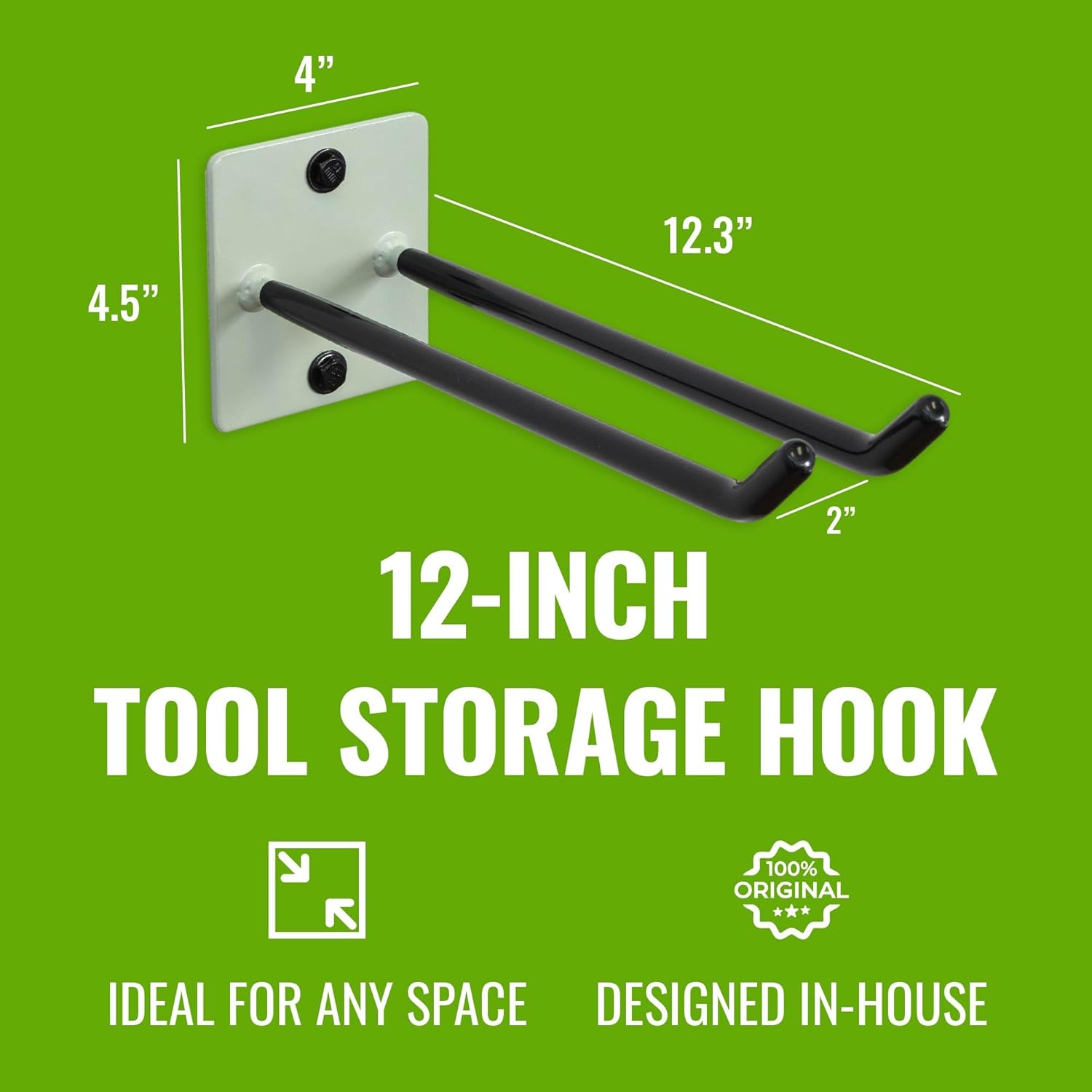 StoreYourBoard Tool Organizer Hook, Wall Mount Garage Storage, Tool Storage for Shovels Rakes Brooms Hoses and More, Rubber-Coated Steel Holds 50 lbs, 12" X 4" X 4.5"