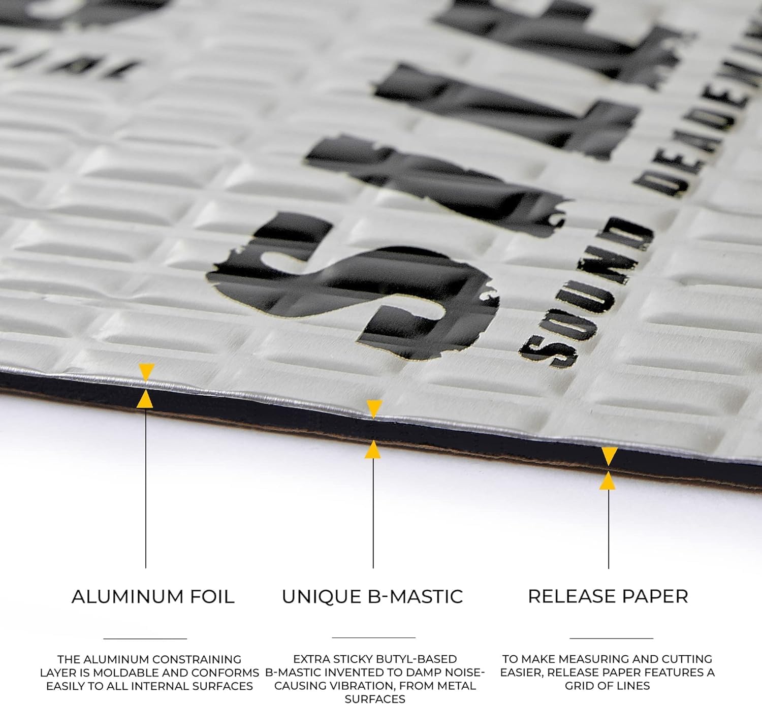 - β Advanced Formulation - SILESS VIBRO Damping Material consists of newly invented Bmastic, technologically most advanced and efficient sound deadening composition on the market today.