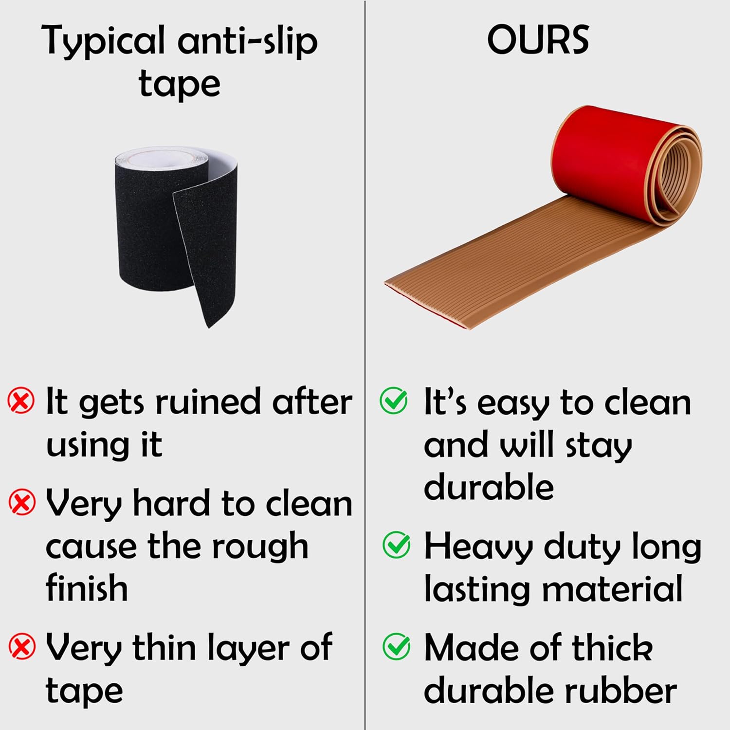 - DURABLE HEAVY-DUTY RUBBER MATERIAL β Our outdoor step treads grip tape is made of heavy-duty thick rubber material and is exceptionally durable. It prevents curling, tearing, wrinkling, or lifting even under the rigors of heavy foot traffic.